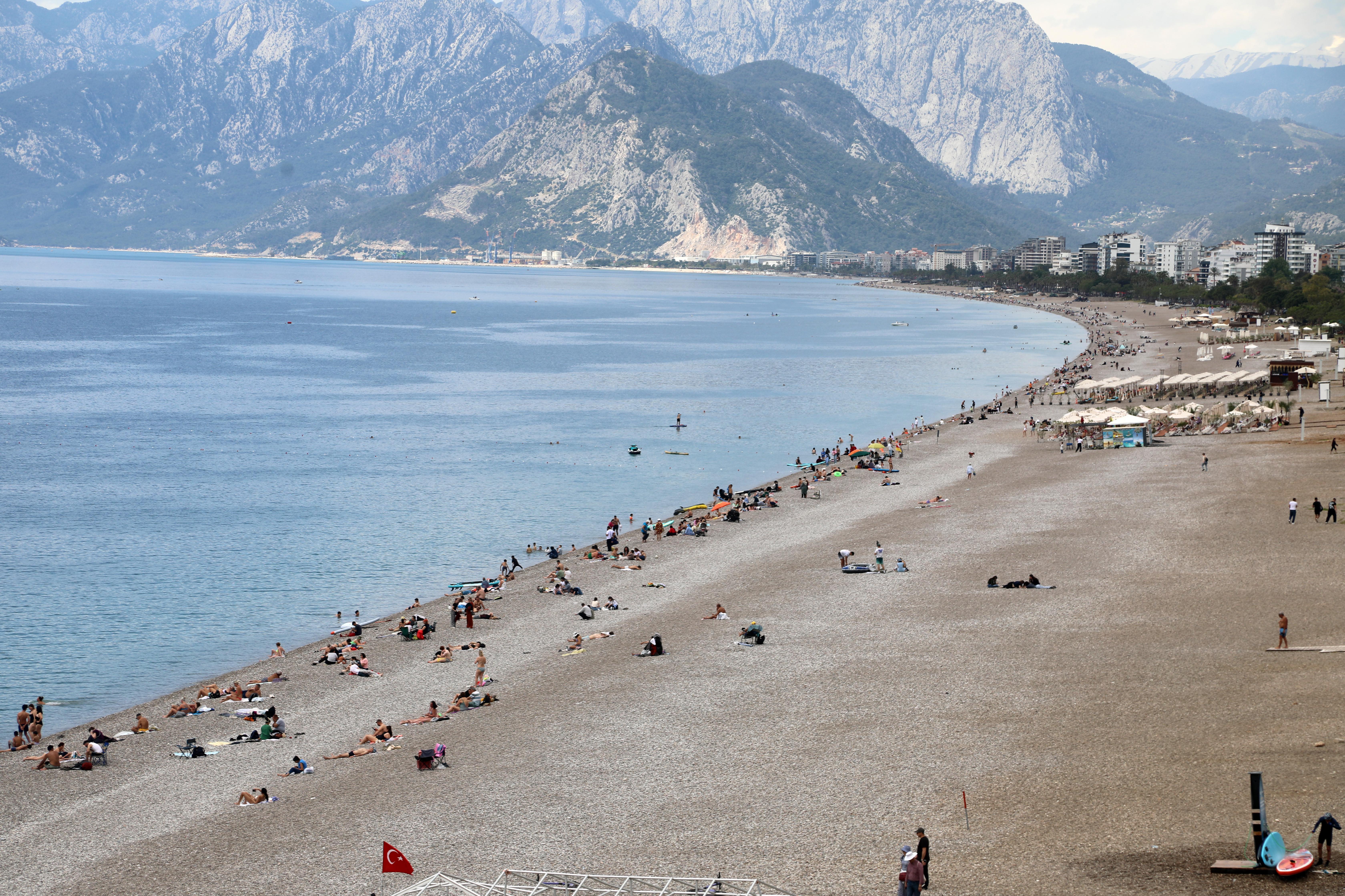 Antalya'da sıcak havayı fırsat bilenler sahile akın etti