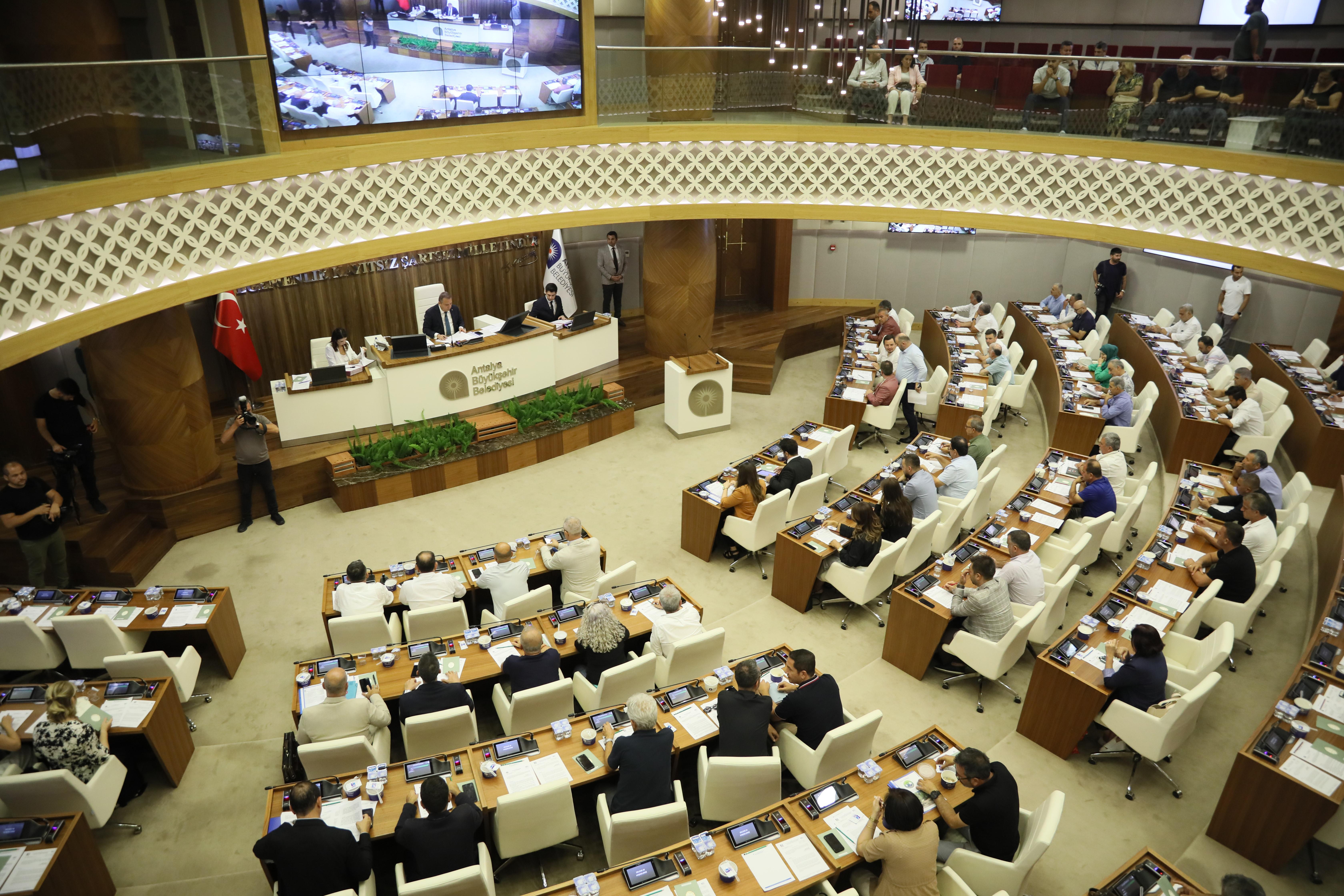 Antalya Büyükşehir Belediyesi'nin Temmuz Ayı Olağan Devam Meclis Toplantısı, Büyükşehir Belediye Başkanı Muhittin Böcek'in başkanlığında meclis toplantı salonunda gerçekleştirildi. 52 maddenin görüşüldüğü toplantı CHP, AK Parti, MHP, Demokrat Parti ve İYİ Parti grup üyelerinin katılımıyla saat 14.30’da başladı.