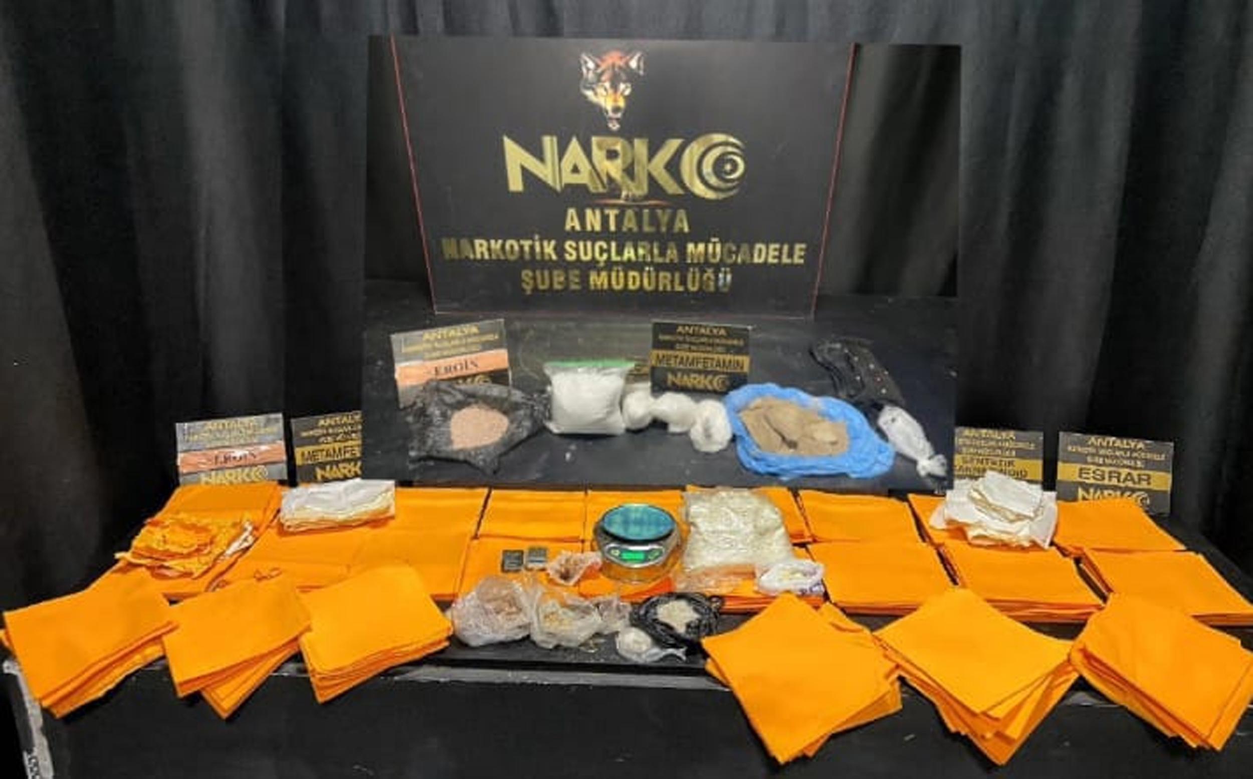 Antalya İl Emniyet Müdürlüğü Narkotik Suçlarla Mücadele Şube Müdürlüğü birimleri, uyuşturucu maddelerin kaynağının kurutulması, ticaretinin ve kullanımının engellenmesi amacıyla çalışmalar gerçekleştirdi. Ekipler, A.Ü. isimli şüphelinin Kepez ilçesinde yüklü miktarda uyuşturucu madde depoladığı ve bu maddeleri 'torbacı' olarak tabir edilen uyuşturucu satıcıları aracılığıyla il genelinde piyasaya süreceğini tespit etti. Operasyonla şüpheliyi yakalayarak gözaltına alan ekipler, operasyon kapsamında şüphelinin otomobilnde ve evinde yapılan aramalarda, 1 kilo 150 gram sentetik kannabinoid hammaddesi fubunica, 913 gram metamfetamin, 560 gram eroin, 247 adet, 1 milyon 368 bin 960 kullanımlık kağıda emdirilmiş sentetik kannabinoid (A4), 6 gram macun esrar, 2 hassas terazi ve uyuşturucu madde ticaretinden elde edildiği değerlendirilen bir miktar döviz ve Türk Lirası ele geçirdi. (DHA)