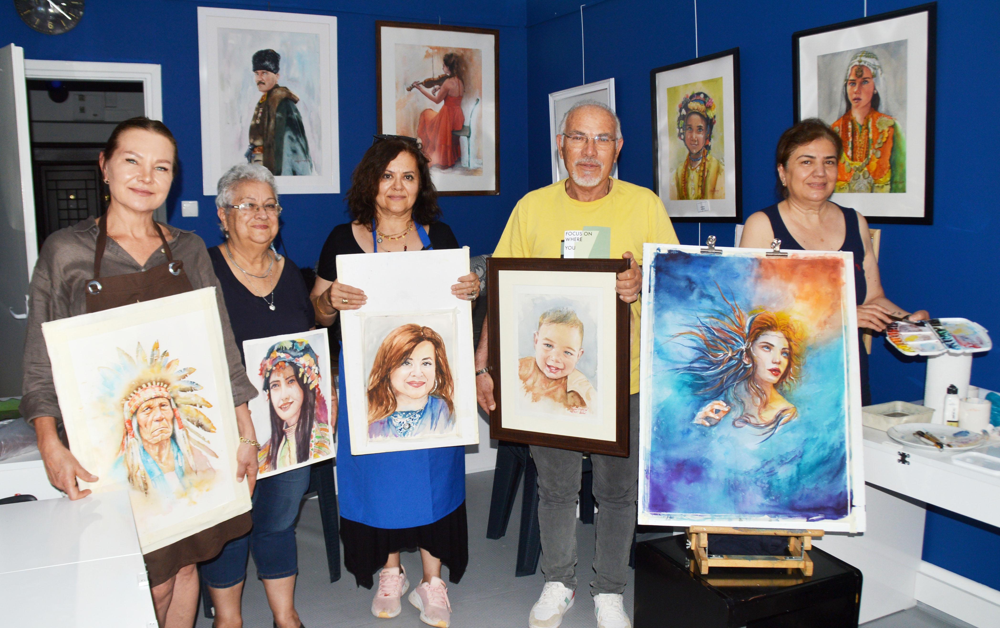 Ekim-kasım ayları arasında başlayacak yeni sanat sezonuna hazırlanan kadın ressamlar, portre çalışmalarını sanatseverlerin beğenisine sunacak. GÜSAD Başkanı Ertuğrul Hepgüzel, "Resim sanatında suluboya en zor tekniklerden biridir. Hata yapmadan sabırla çalışmak gerekiyor. Atölyemizde renklerin arasında çok zevkli bir çalışma sürdürüyoruz" dedi.