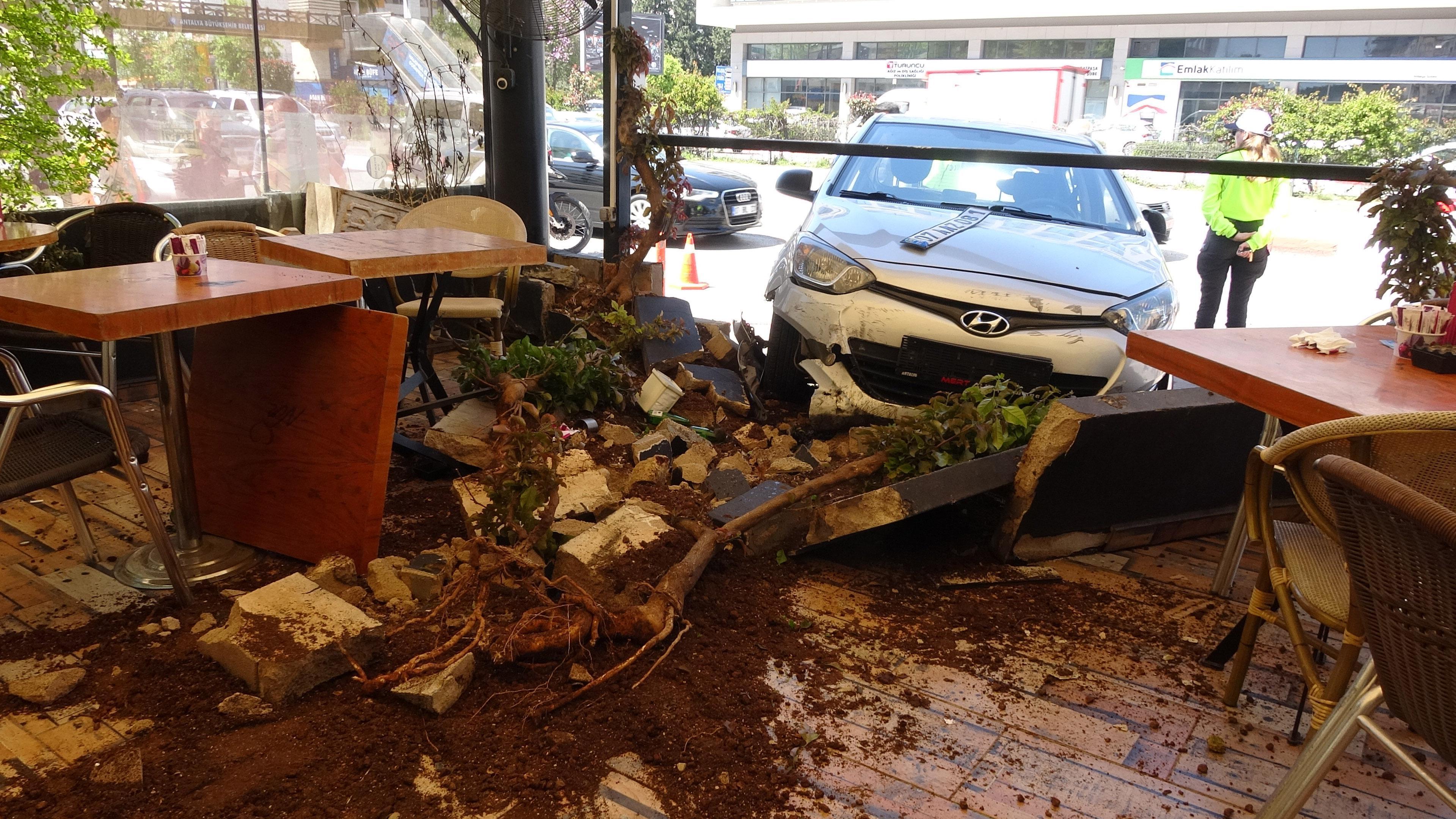 Adem AKALAN- İrem GÜNEYBAZ/ANTALYA, (DHA)- ANTALYA'da başka bir aracın sıkıştırdığı otomobil önce refüje, ardından yol kenarındaki pastanenin duvarına çarptı.