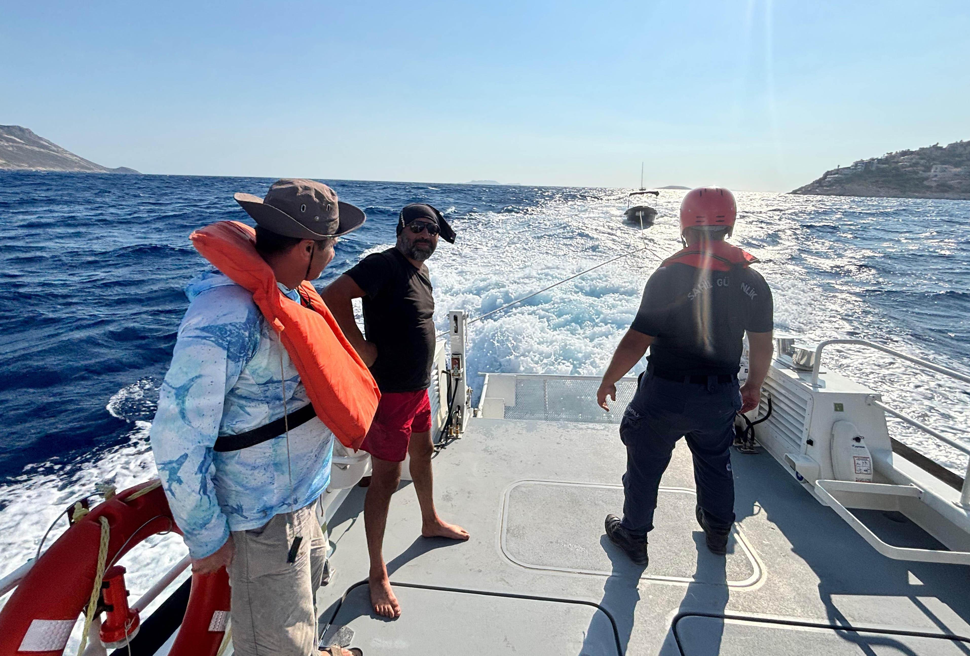 Göktan CANAZ/ANTALYA, (DHA)- ANTALYA'nın Kaş ilçesinde, makine arızası yapıp, olumsuz hava şartları nedeniyle sürüklenen 2 kişi, Sahil Güvenlik ekiplerince kurtarıldı.