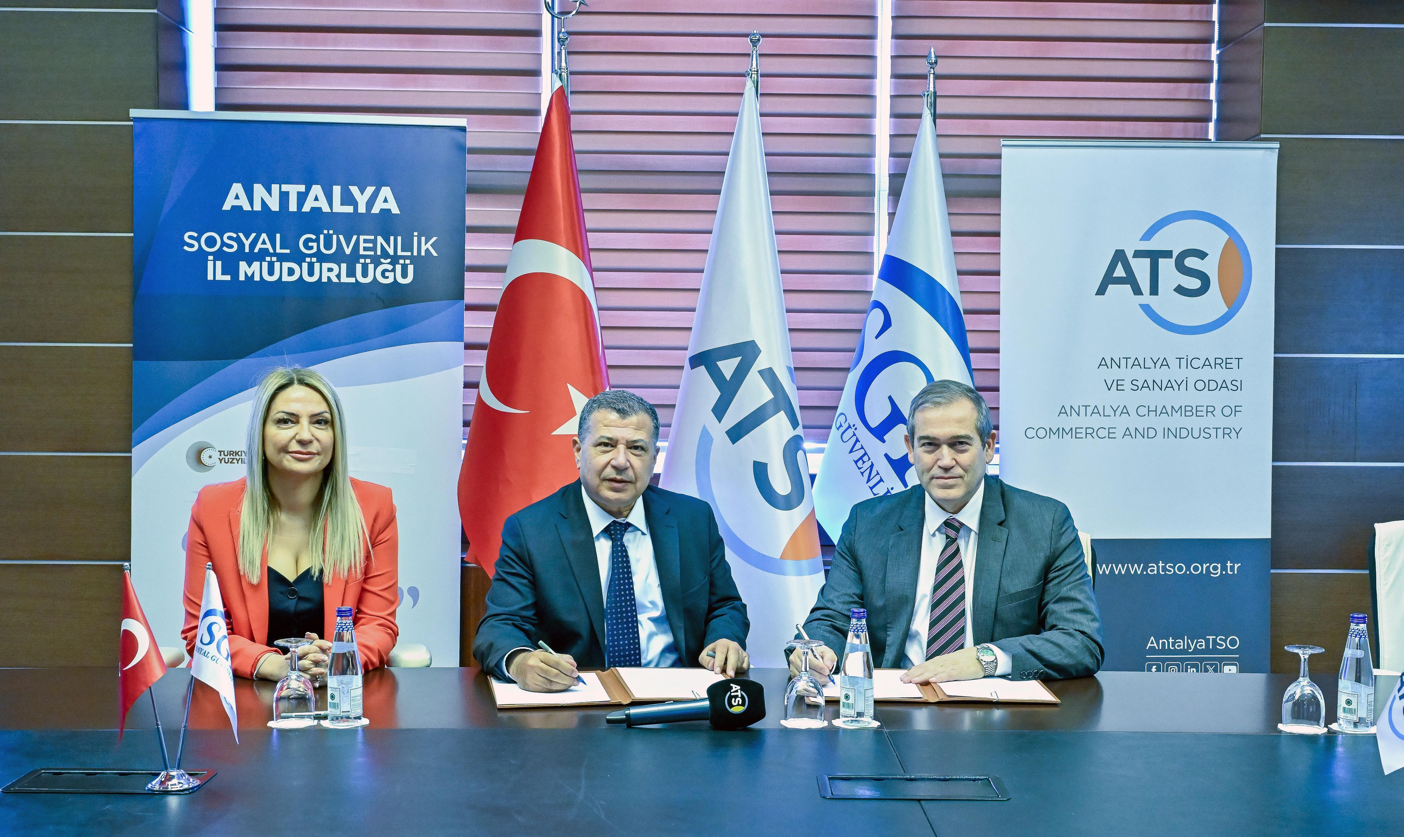 ANTALYA, (DHA)- ANTALYA Ticaret ve Sanayi Odası (ATSO) ile Sosyal Güvenlik Kurumu (SGK) Antalya İl Müdürlüğü arasında 'Rehberlik ve İş Birliği Protokolü' imzalanarak, şehrin ekonomik kalkınması, istihdamın artırılması ve üretimin desteklenmesi yolunda önemli bir adım atıldı.