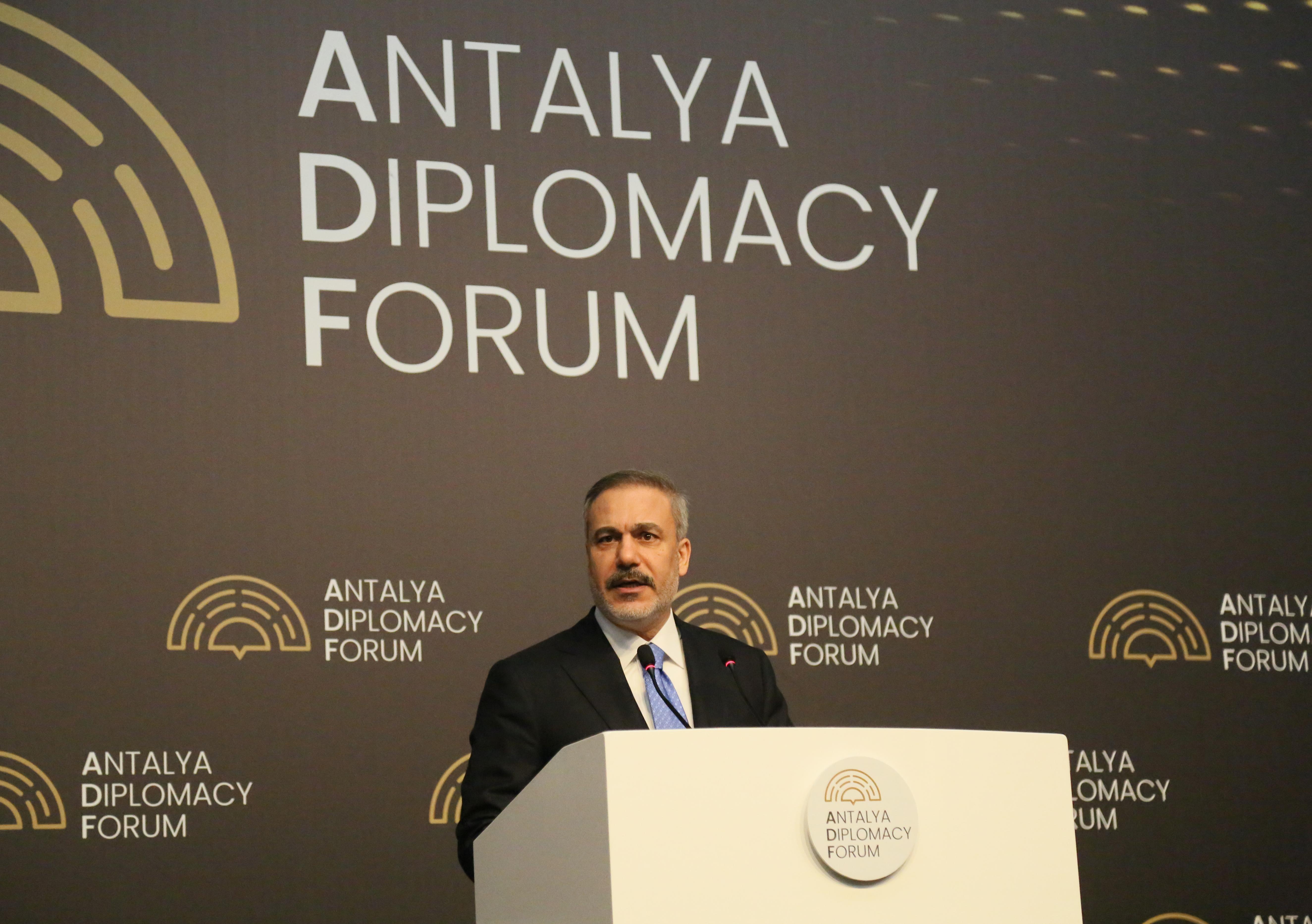 Antalya'da üç gündür devam eden Antalya Diplomasi Forumu (ADF), Dışişleri Bakanı Hakan Fidan'ın basın toplantısı ile sona erdi. 4’üncüsü düzenlenen ADF'de bu yıl da diplomasinin nabzının tutulduğunu belirten Bakan Fidan, “Zengin ve çok katmanlı bir istişare platformu olarak hepinizin de katkılarıyla öne çıkmıştır. Forum bölgesel ve küresel gelişmelere ışık tutarak, mevcut sorunlara çözüm önerileri getirmiştir. Bu yılki buluşmamızda insanlığın ortak geleceğine dair umutlarımızı ve kaygılarımızı hep beraber dile getirdik. Bu geleceği birlikte inşa edecek iş birliği mekanizmalarını ele aldık. Ayrışan dünyada diplomasiyi sahiplenme anlayışıyla diplomasinin kutuplaşmayı değil, uzlaşıyı nasıl öne çıkarabileceğini tartıştık. Diplomasinin sadece kriz anlarında başvurulan bir araç değil, aynı zamanda dönüştürücü bir akıl ve onarıcı bir irade olduğunu vurguladık" diye konuştu.
