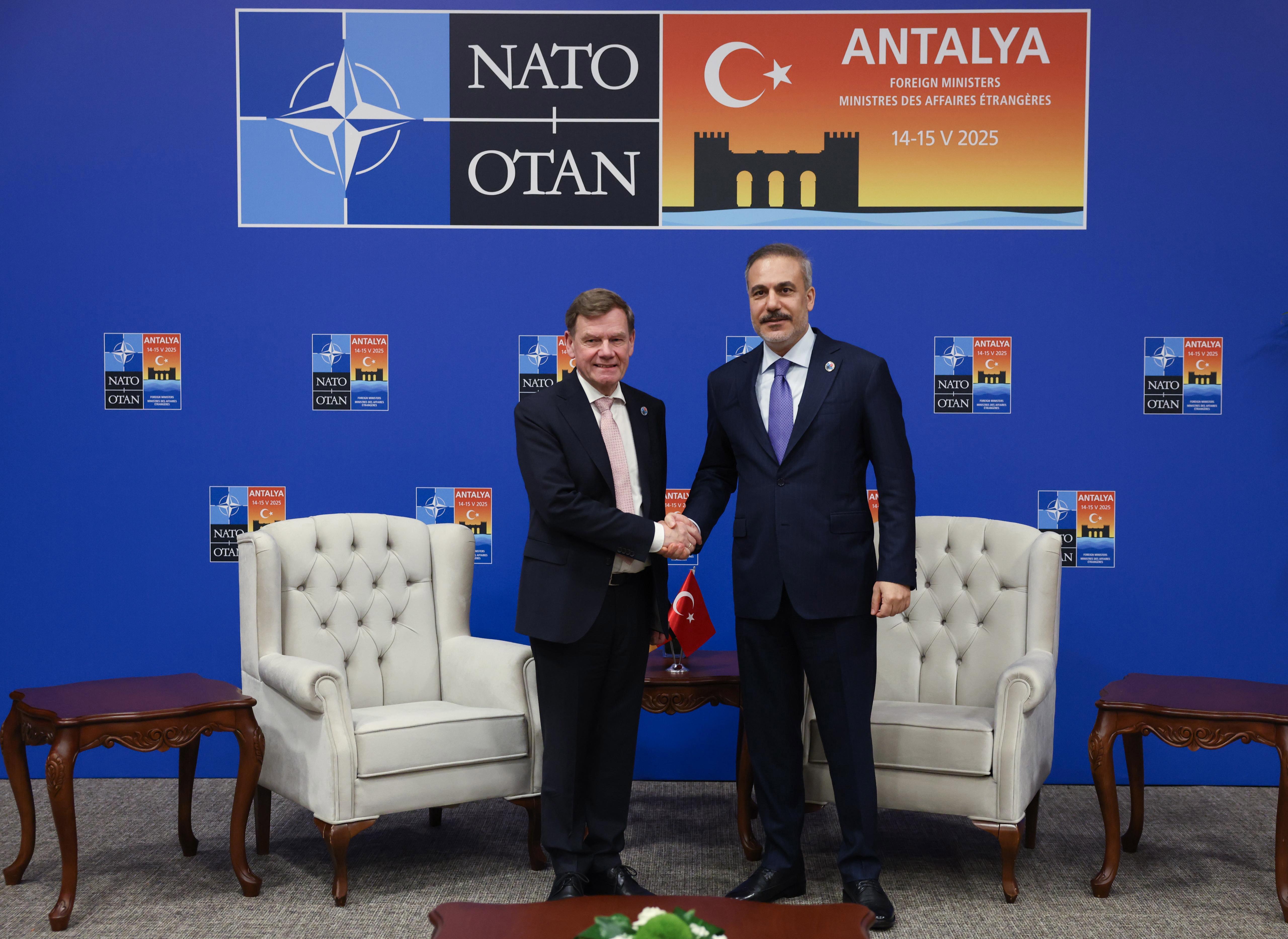 Dışişleri Bakanı Hakan Fidan, Antalya’daki NEST Kongre Merkezi'nde düzenlenen NATO Dışişleri Bakanları Gayriresmi Toplantısı marjında, Almanya Dışişleri Bakanı Johann Wadephul ile görüştü. (DHA)