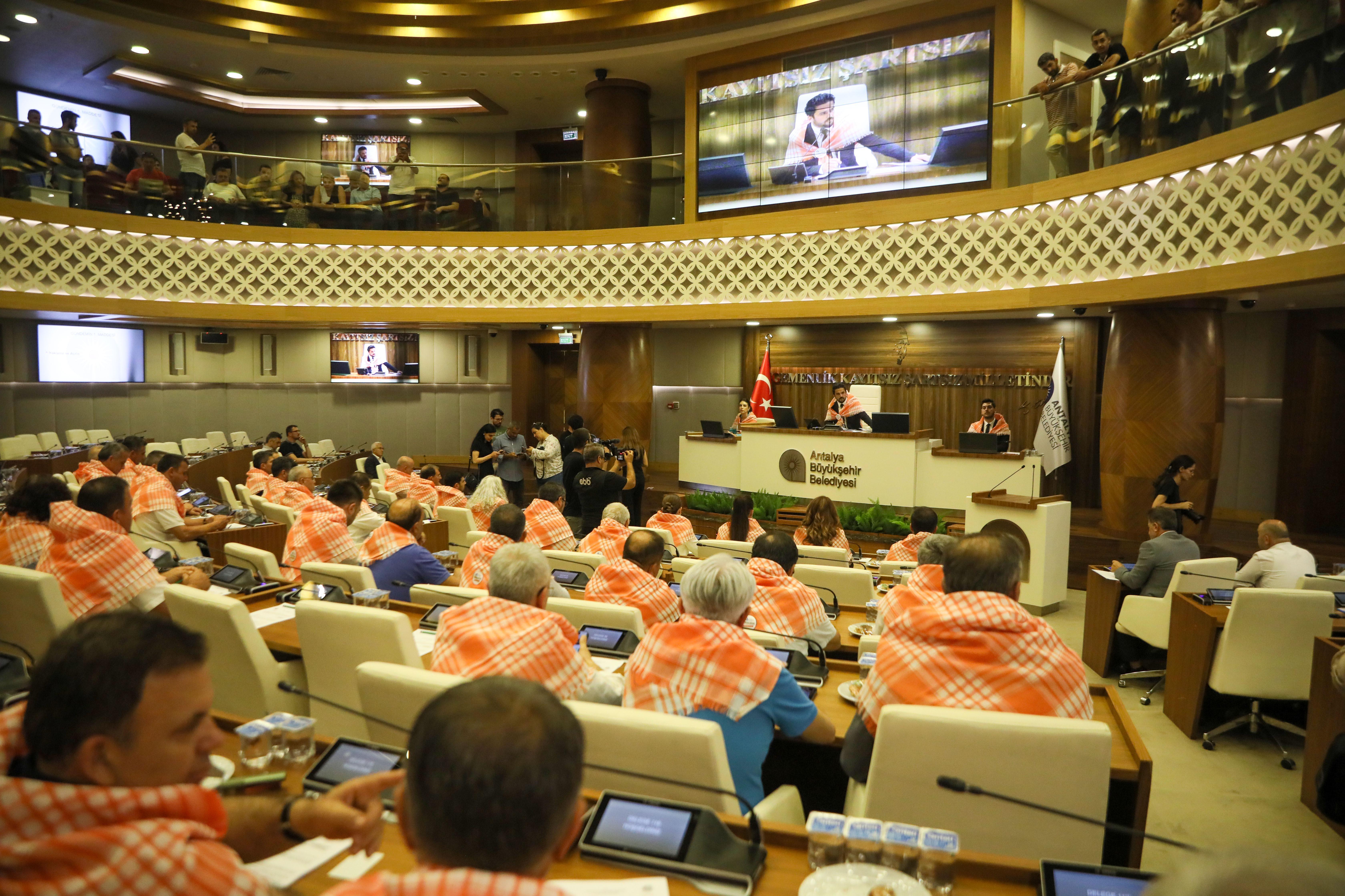 Antalya Büyükşehir Belediyesi'nin Temmuz ayı olağan meclis toplantısı gerçekleştirildi. Toplantıya geçen hafta yürütülen soruşturma kapsamında tutuklanan Büyükşehir Belediye Başkanı Muhittin Böcek'in yerine, meclis başkanvekili Bayram Ali Çeltik başkanlık etti. Meclise katılan CHP'li meclis üyeleri üzerinde 'Muhittin Böcek'in adının yazdığı yörük poşusu takarak katıldı. Toplantı öncesinde konuşan Bayram Ali Çeltik, "Muhittin Böcek adliye koridorlarında yargılanırken 'Asla slogan atmayın. Hiçbir kamu görevlisini, hakimi, savcıyı incitecek bir şey yapmayın. Onlar işlerini yapıyor' diyerek nasıl bir devlet adamı olduğunu ve devlet terbiyesi aldığının gösterdi. Bir devlet adamı bu hallere düşürüldüyse vay halimize. Cezalandırılan Muhittin Böcek değildir, cezalandırılan dünyanın dört bir tarafından gelen misafirlerimizdir, cezalandırılan halkımızdır. Adalet bir gün hepimize lazım olacak" dedi. Çeltik'in konuşmasının ardından katılımcılar 'Herkesin Başkanı Muhittin Böcek' diye slogan attı. 113 maddenin görüşüleceği meclis toplantısı öncesinde grup sözcüleri de konuşmalarını yapmak için söz istedi.