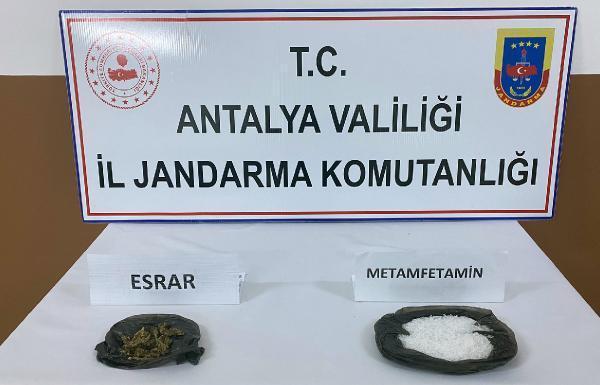 ANTALYA, (DHA) - ANTALYA'da yol kontrol noktasında durdurulan otobüste narkotik köpeği 'Cam'ın yolcunun oturduğu koltuğa tepki vermesi üzerine yapılan aramada 16 gram esrar, 150 gram metamfetamin ele geçirildi.