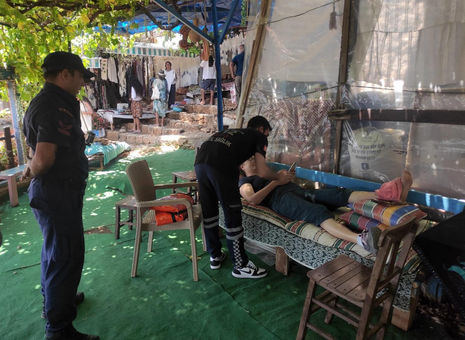 Kaleköy'de düşen turist, sahil güvenlik botuyla ambulansa götürüldü