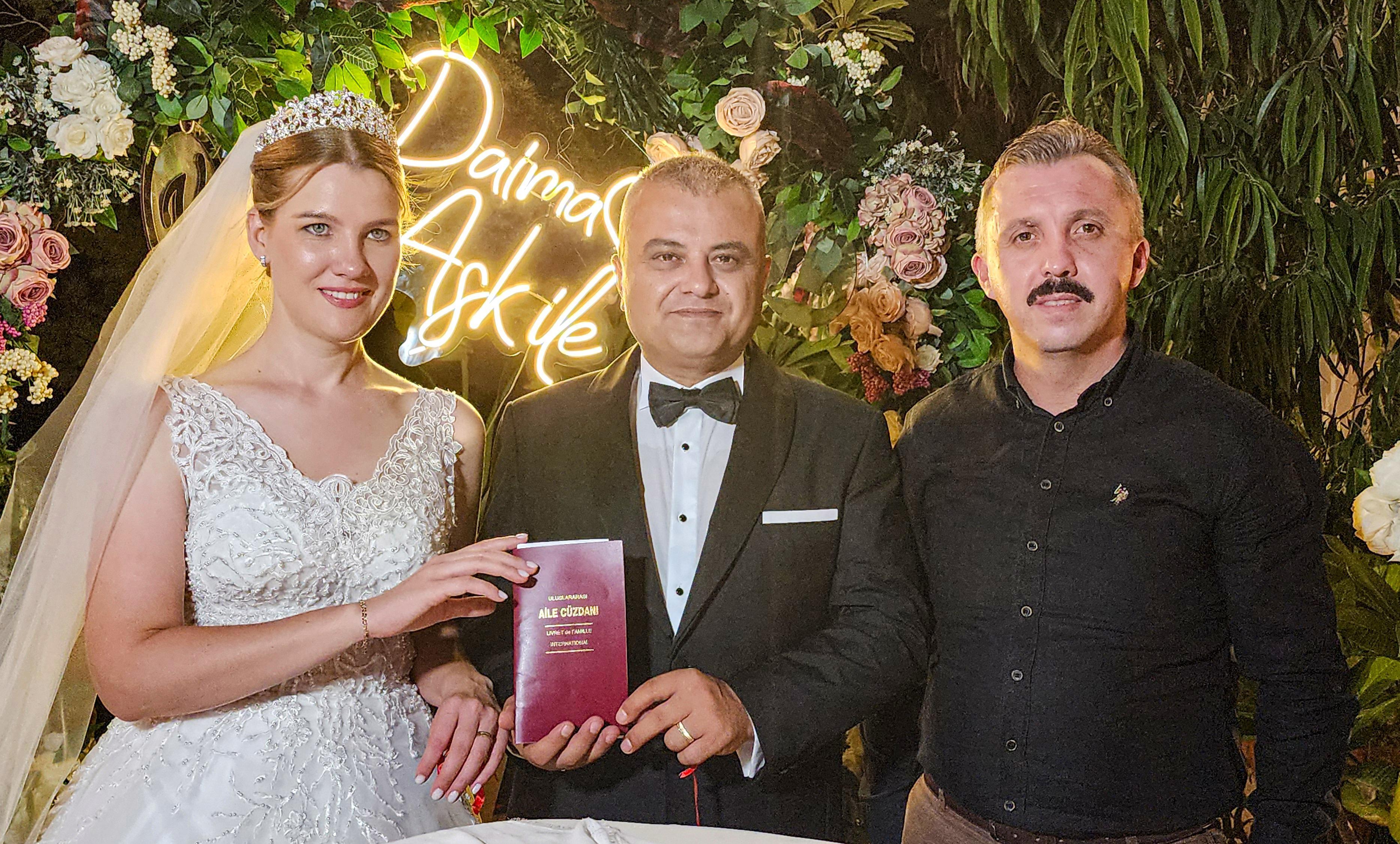 Alparslan ÇINAR/ANTALYA, (DHA)- DEMİRÖREN Haber Ajansı (DHA) Kemer ilçe muhabiri Levent Yenigün, Rusya vatandaşı öğretmen Vida Sudentaite ile görkemli düğünle dünya evine girdi.
