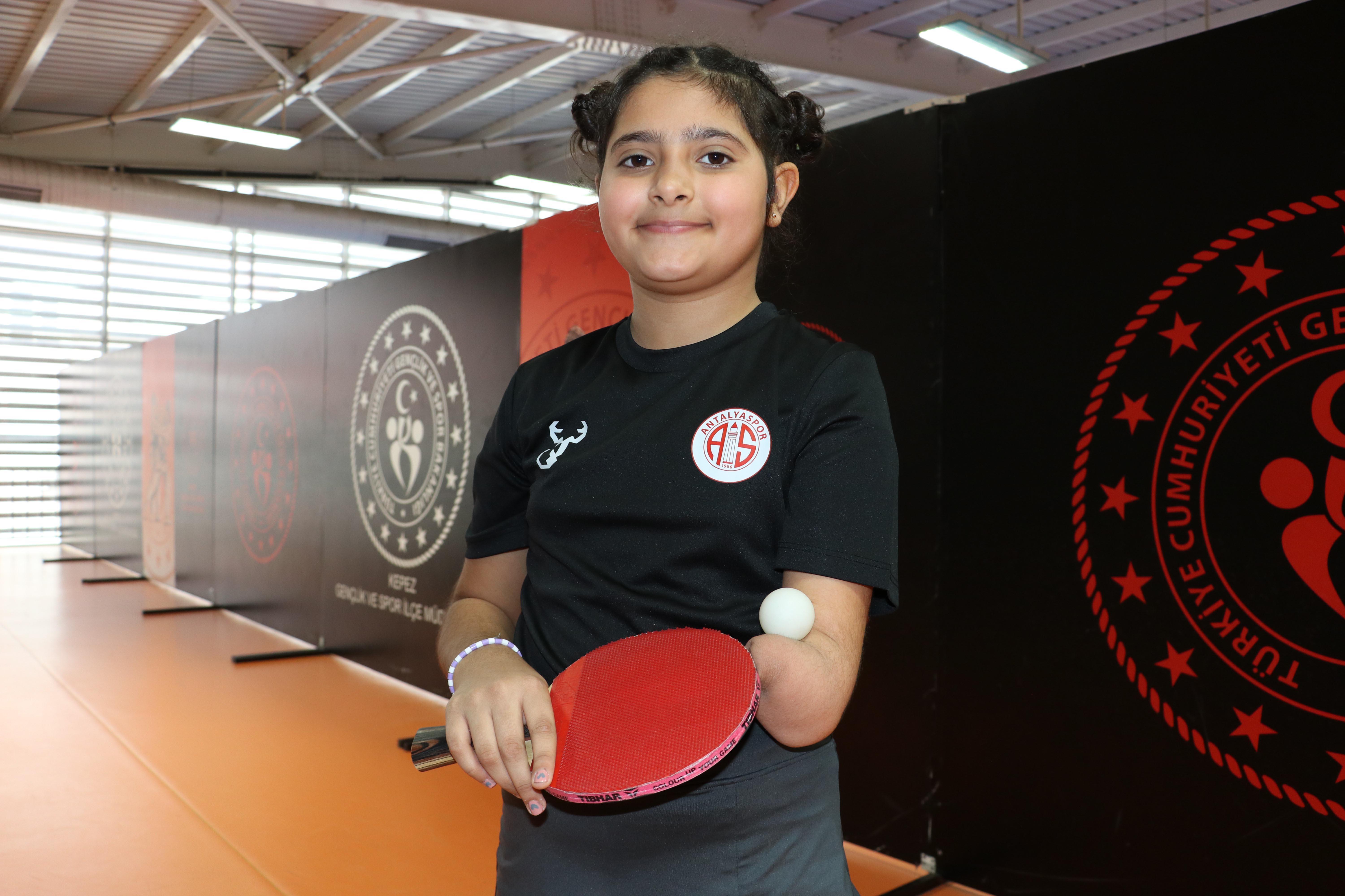 Tunahan KIR/ANTALYA, (DHA)- ANTALYA'da sol eli olmadan dünyaya gelen Maya Asya Gültekin (11), okullarındaki spor seçmelerinde antrenörünün keşfetmesiyle masa tenisi sporuna başladı. Bedensel Engelliler Masa Tenisi Türkiye Şampiyonası'nda üst üste derece alan Maya Asya, Avrupa ve Dünya şampiyonluğunu hedeflediğini söyledi.