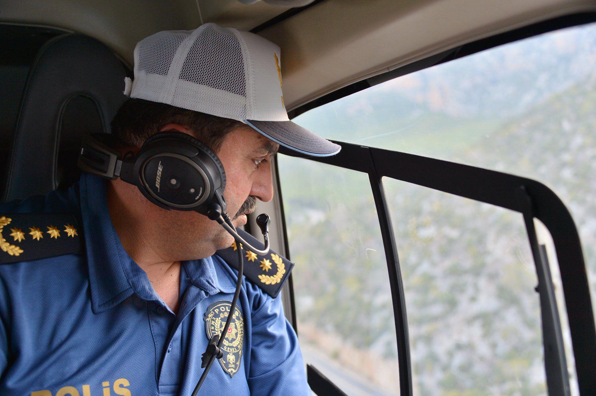 Adem AKALAN/ANTALYA, (DHA)- ANTALYA Emniyet Müdürü İlker Arslan, helikopterle havadan yapılan denetimleri inceledi.