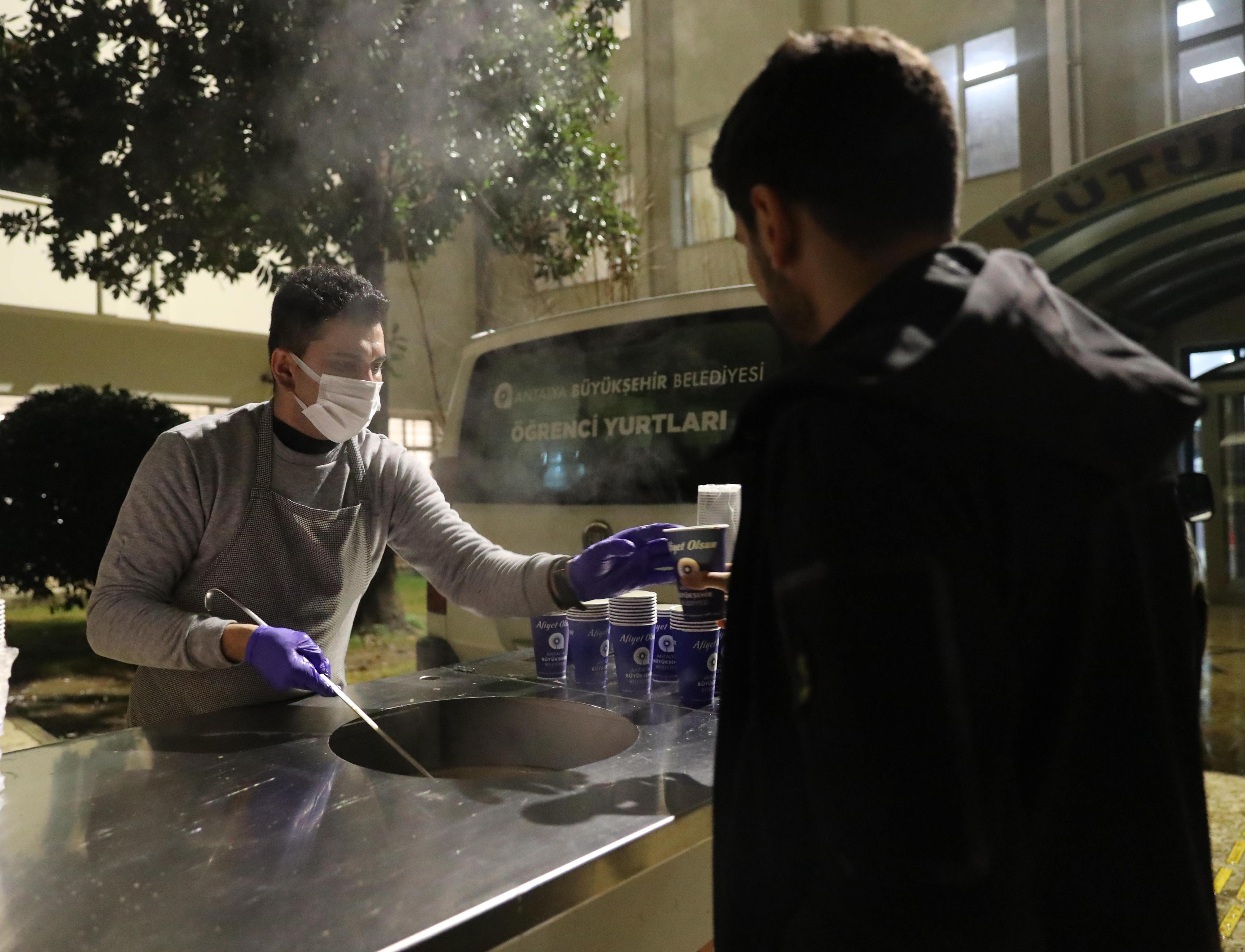 ANTALYA, (DHA) - ANTALYA Büyükşehir Belediyesi, final haftasında Akdeniz Üniversitesi öğrencilerine sıcak çorba ikram ediyor.
