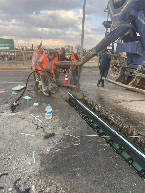 ANTALYA, (DHA) - KARAYOLLARI Genel Müdürlüğü'nün 02.10.2015 tarihi ve 192048 sayılı yazısı ile Antalya Büyükşehir Belediyesi sorumluluk ağına dahil olan Gazi Bulvarı Hal Köprülü Kavşağı'nda vatandaşların can ve mal güvenliğini tehlikeye atan durum için acil bakım onarım çalışması yapıldı. Büyükşehir Belediyesi Fen İşleri Dairesi Başkanlığı ekipleri tarafından, köprü birleşim noktalarında gerekli güçlendirmeler yapılarak genleşme derz imalatları gerçekleştirildi. Köprü güvenli hale getirildi.