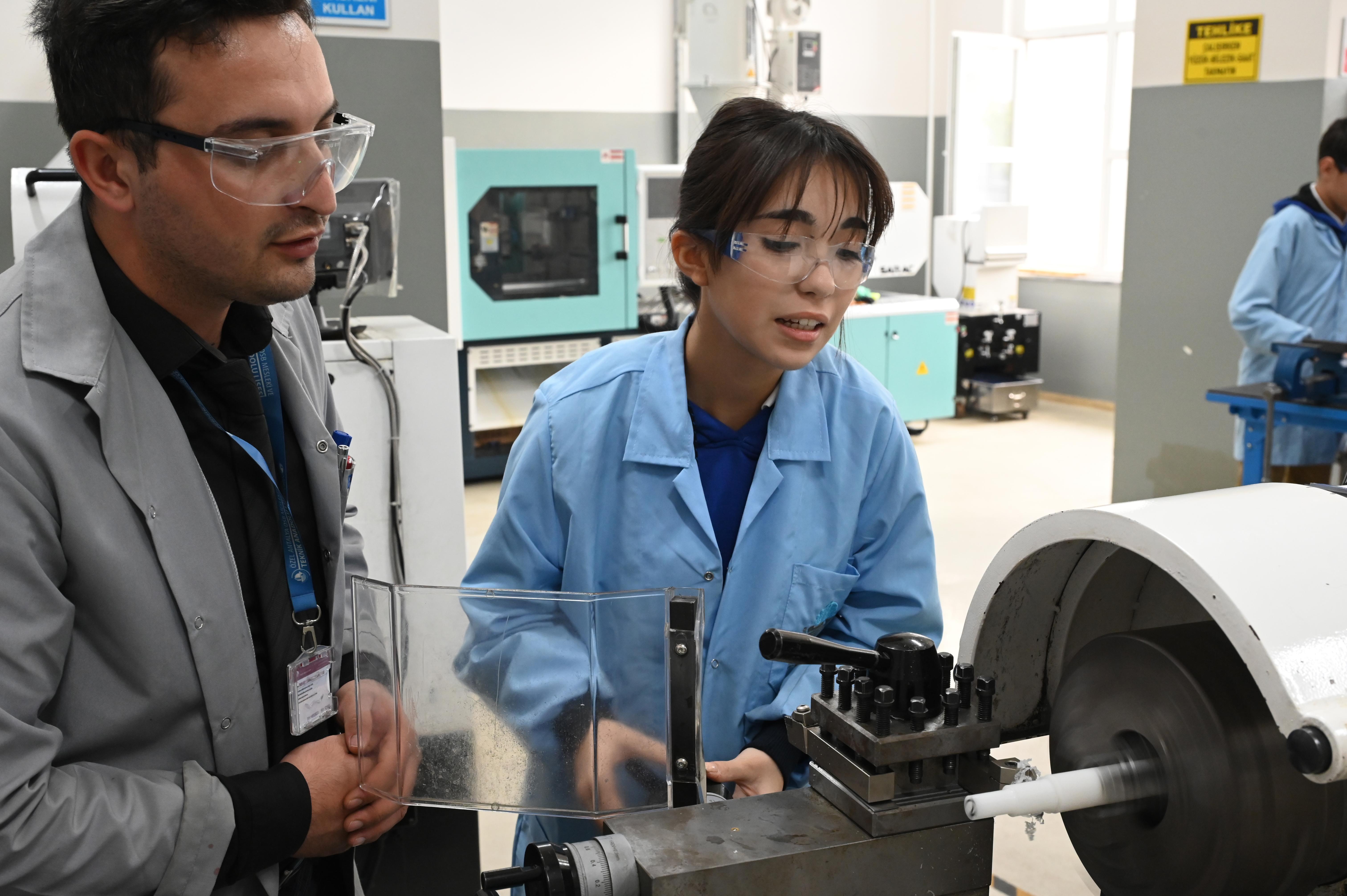 Farklı birçok makineyi hem okul hem de fabrikadaki stajda öğrenme şansı bulduğunu belirten makine bölümünden Zeynep Su Bulduk, "Gerçekten çok mutluyum. CNC, kumlama makinelerini öğrendim. Bu mesleği aslında sevmeyerek geldim ama ustalarım ve hocalarım sayesinde çok mutluyum" dedi. Makine bölümünden Kübra Ağırcan ise vida açmayı bile bilmezken artık sanayide birçok farklı alanda çalışabilir konuma geldiğini söyledi.