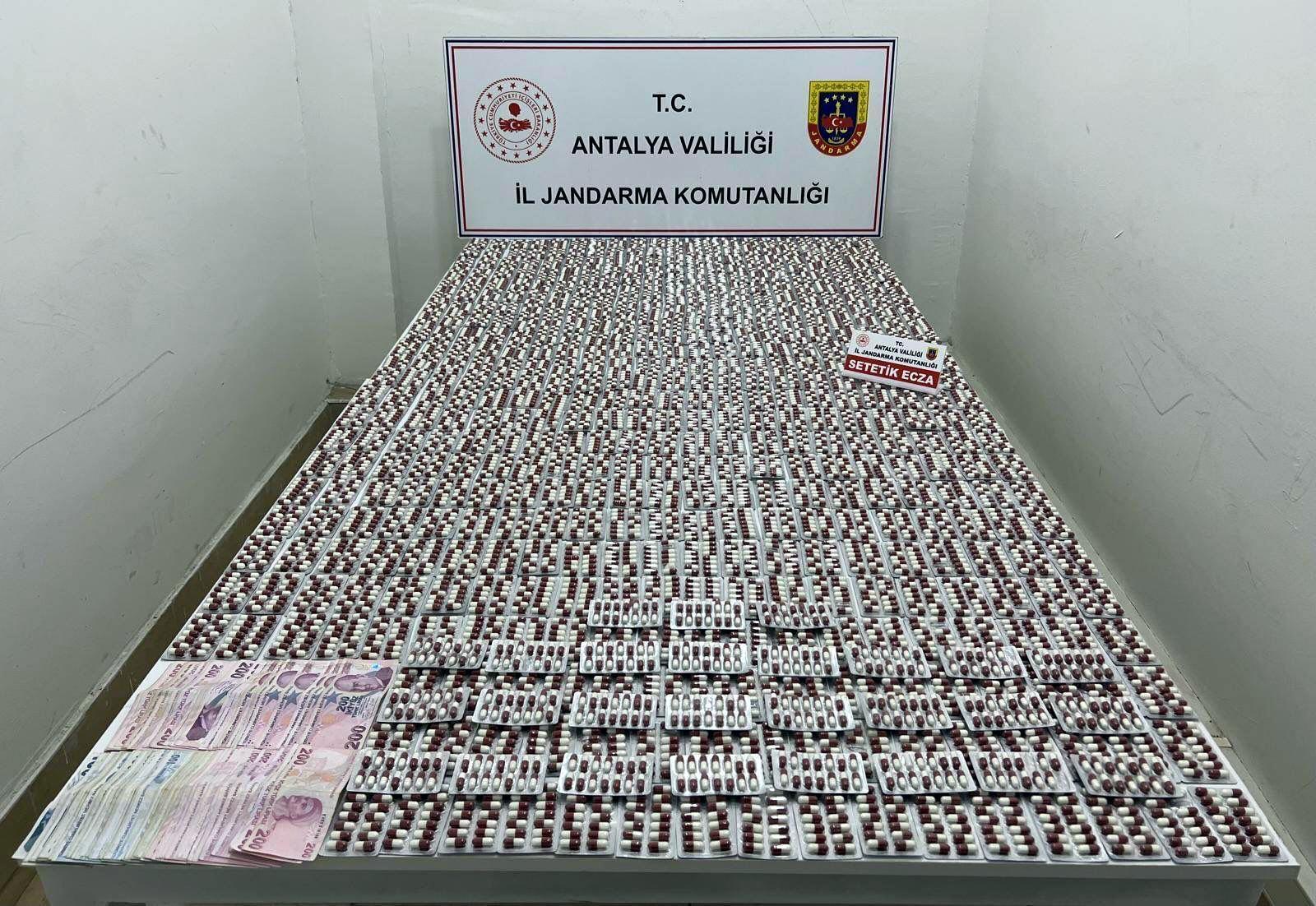 Antalya İl Jandarma Komutanlığınca yürütülen çalışmalar kapsamında, Antalya Cumhuriyet Başsavcılığı talimatları doğrultusunda Kepez ilçesinde 2 şüpheliye ait motosiklette arama yapıldı. Bunun sonucunda 15 bin 560 sentetik uyuşturucu hap, uyuşturucu satışından elde edilen 16 bin 900 TL ele geçirildi. Olayla ilgili adli tahkikat başlatıldı. (DHA)