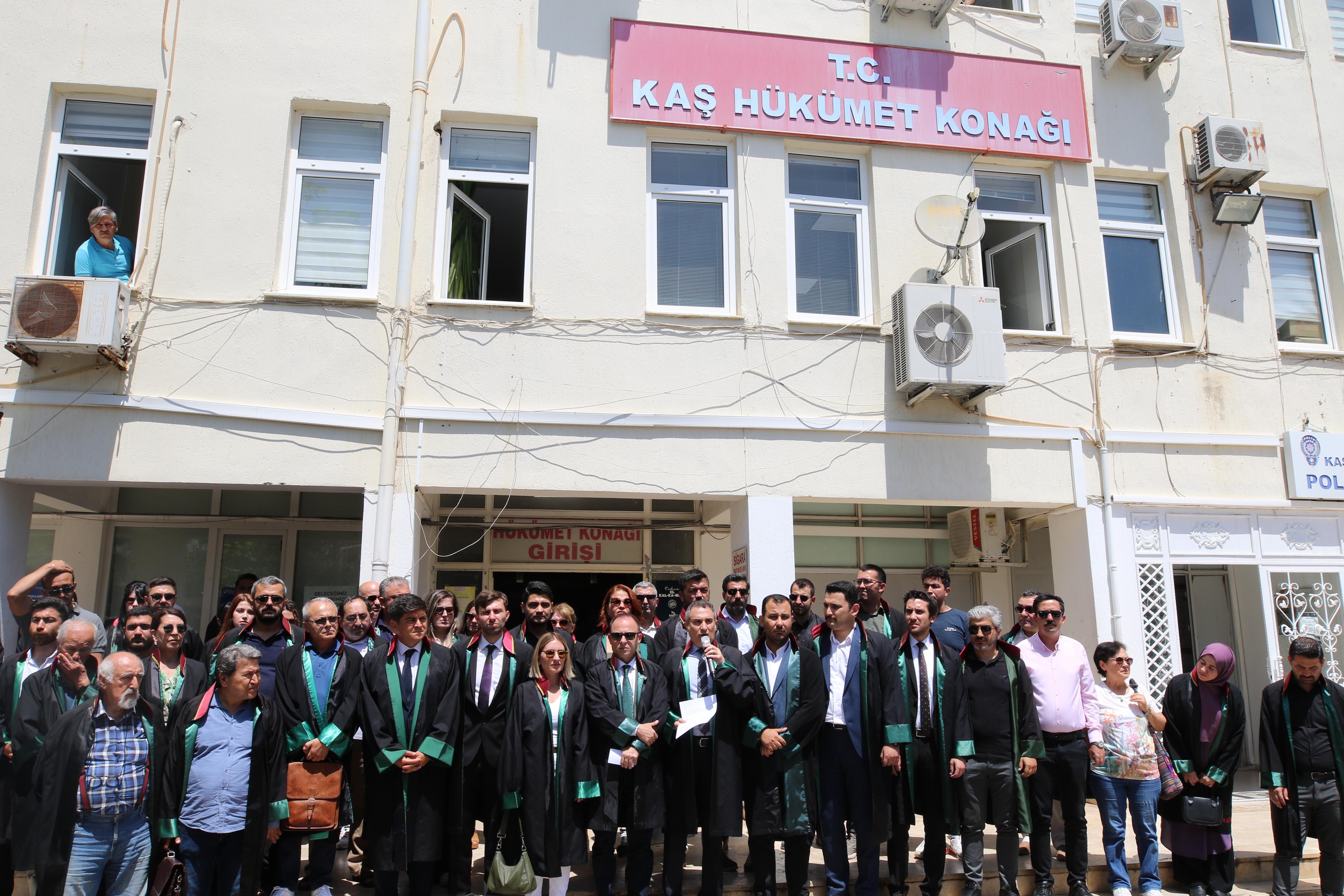 Kaş Adliyesi'nde Başsavcı Gökhan Feyzoğlu ile avukat Hakan Tüzen arasındaki tartışmaya ilişkin Antalya Barosu Başkanı Hüseyin Geçilmez, Türkiye Barolar Birliği (TBB) yönetim kurulu üyesi Gökhan Bozkurt, Antalya Barosu yöneticileri, çok sayıda avukatın katılımıyla Kaş Adliyesi önünde basın açıklaması yapıldı. Yaşananları talihsiz ve üzücü olarak nitelendiren Hüseyin Geçilmez, avukatları yargının üç sac ayağından biri olarak görmeyen, adliyelerde avukatlara hak ettiği muamelenin tersini gösteren anlayışa karşı seslerini yükseltmek için geldiklerini söyledi. Yakın zamanda avukatlara yönelik özellikle adliyelerde kabul edilemez davranışlarla karşı karşıya kaldıklarını belirten Geçilmez, “Meslektaşımız Hakan Tüzen Kaş Adliyesinin Başsavcısı tarafından 'Bu tuvaleti kullanamazsın, ben başsavcıyım kimin kullanacağına ben karar veririm' şeklinde sözlü şiddete uğramış, yine başsavcının talimatı ile özel korumasınca zor kullanılmak suretiyle avukatların yıllardır kullandığı tuvaletten çıkartılmıştır. Yaşanan bu çirkin olayın izah edilebilir bir tarafı bulunmamaktadır. Ülkemiz ve yargı dünyası için asıl üzücü olan bir Cumhuriyet Başsavcısının yasada açık olarak belirtilen asli görevleri ile ilgilenmek yerine avukatların tuvalet ihtiyacını kendine dert edinmesidir" dedi.