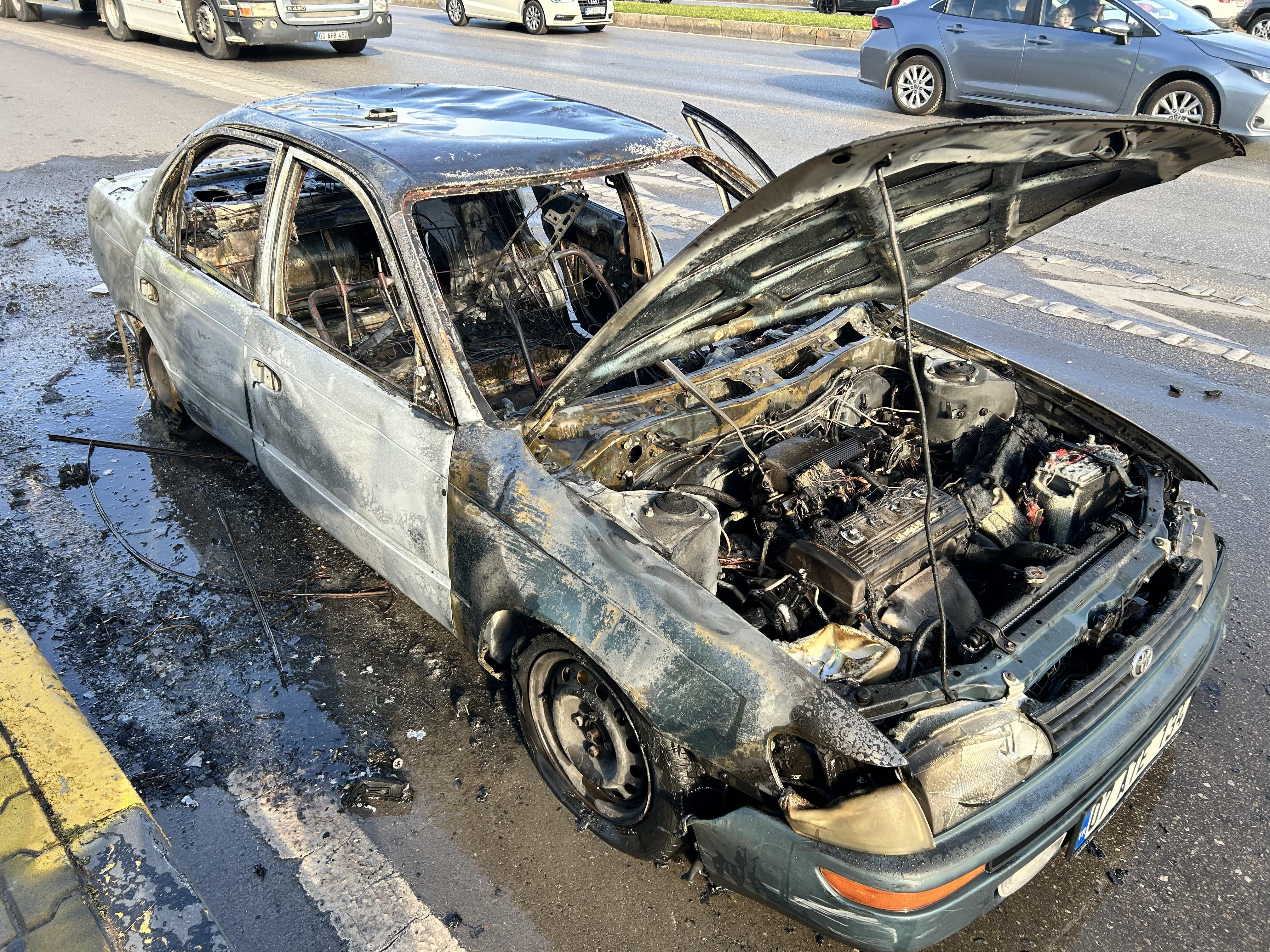 İhbarla bölgeye sevk edilen itfaiye ekiplerinin yaklaşık yarım saatlik çalışmasıyla yangın söndürüldü. Otomobili hurdaya dönen Enver A.'nın işinden evine dönerken olayın yaşandığı öğrenildi. Ekipler otomobili çekip, yolu trafiğe açtı. Trafik ekipleri, olaya ilişkin tutanak tuttu. Yangının çıkış nedeni araştırılıyor. (DHA)
