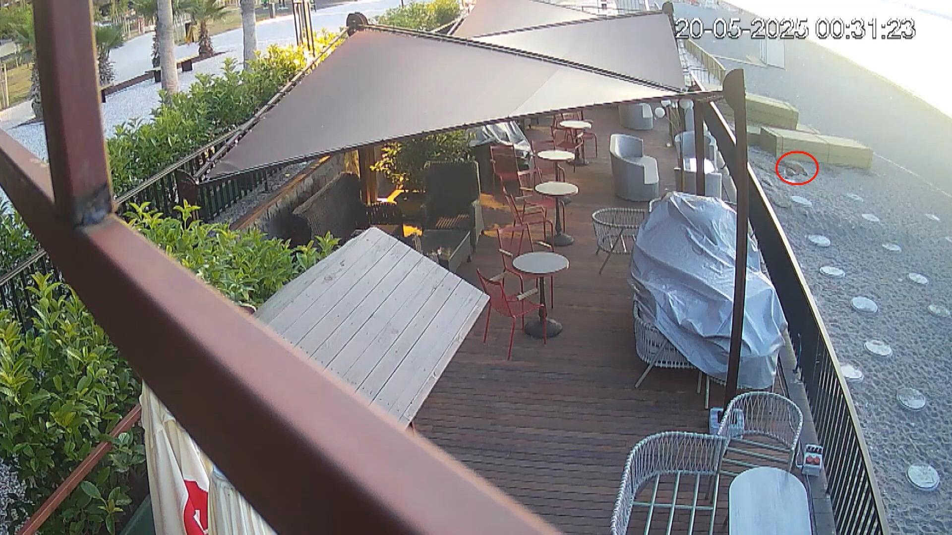 Sahildeki bir işletmenin çalışanı Fatih Ardil, sabah saatlerinde iş yerine geldiğinde kumluk alanda 4 çukur fark etti. Çukurları inceleyen Ardil, yumurtalar olduğunu gördü. Bunun üzerine güvenlik kamerası görüntüsünü inceleyen çalışanlar, çukurların bir deniz kaplumbağası tarafından açıldığını anladı. Nesli tehlike altındaki türün yumurtaları olduğunu fark eden çalışanlar, tahta parçalarına şeritler çekerek, yuvaları koruma altına aldı.