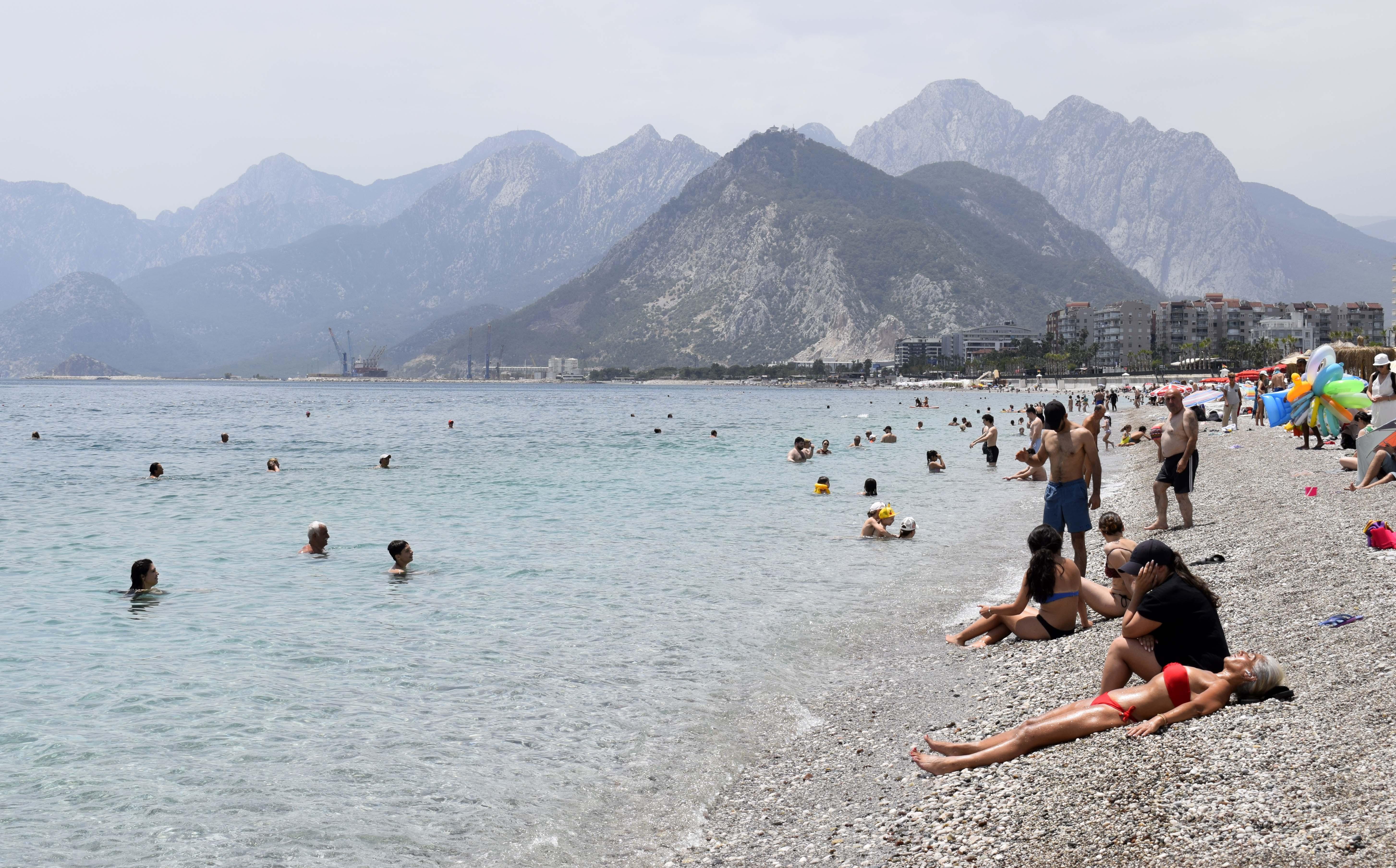 Aysu DURSUN/ANTALYA, (DHA)-ANTALYA'da hava sıcaklığı 35 dereceye, nem oranı yüzde 30'a ulaştı. Sıcak havadan bunalanlar, Konyaaltı Sahili'ne akın etti.