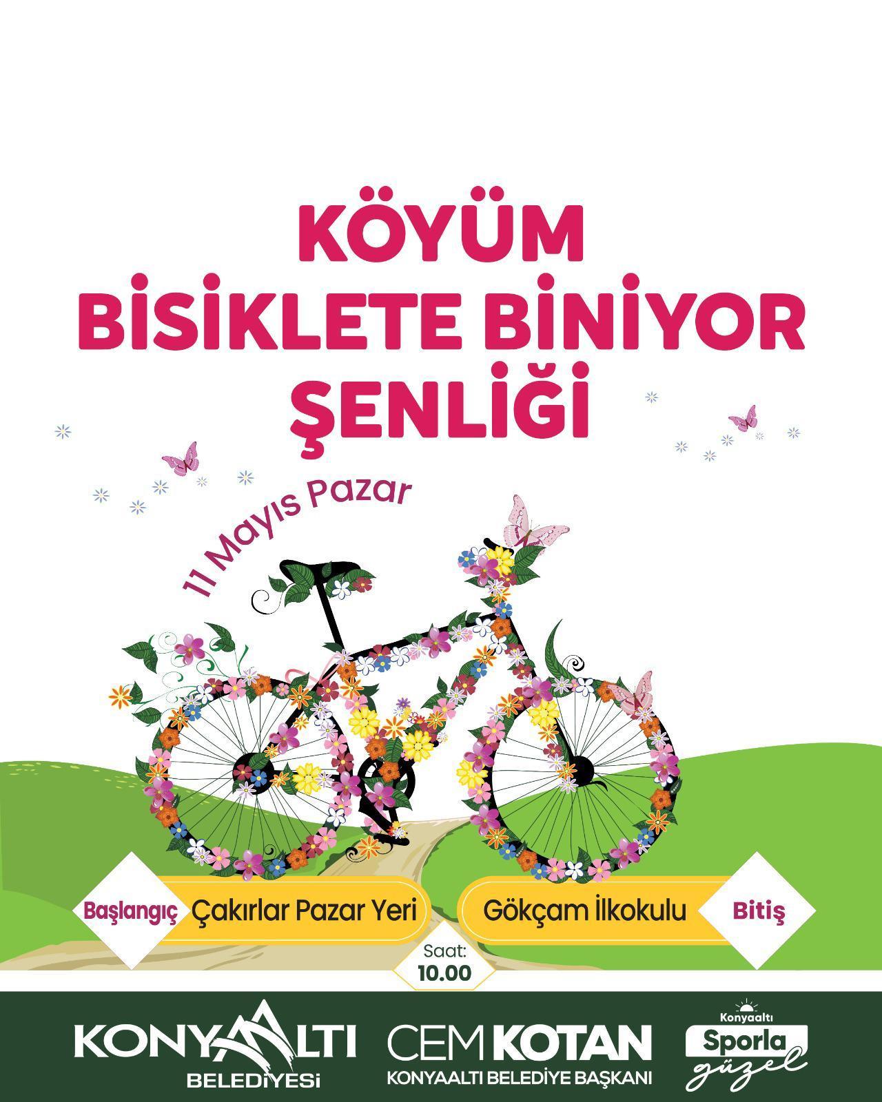 ANTALYA, (DHA)- KONYAALTI Belediyesi ve Antalya Kent Konseyi iş birliğiyle düzenlenecek 'Köyüm Bisiklete Biniyor Şenliği' bu yıl 7’nci kez gerçekleşecek. Konyaaltı’nın 8 kırsal mahallesini kapsayan şenlik, 11 kilometrelik parkurdan oluşacak.