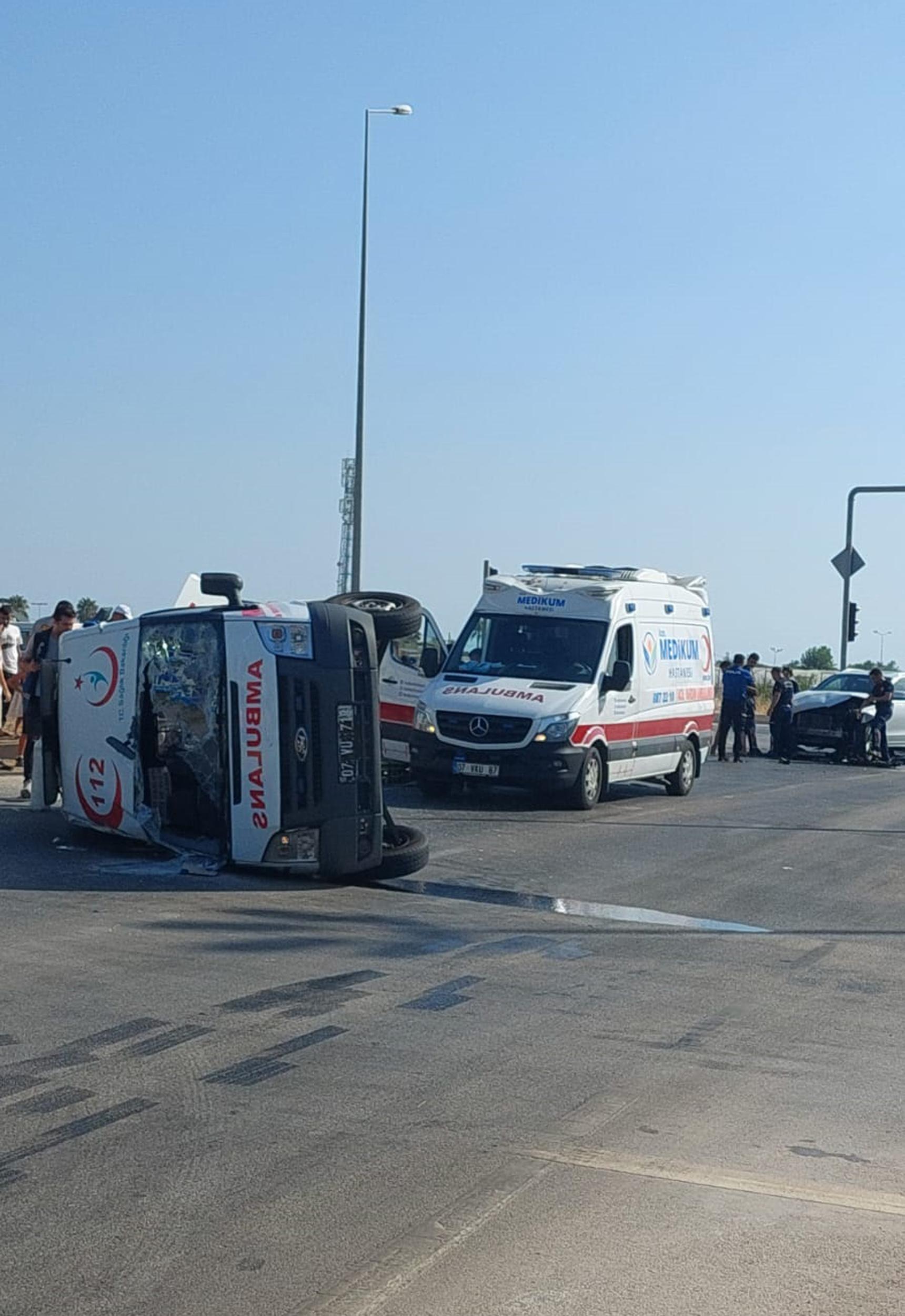 Ramazan SARIKAYALI/KUMLUCA, (DHA)- ANTALYA'nın Kumluca ilçesine ambulansın otomobil ve kamyonetle çarpışıp devrildiği kazada, 3 sağlık personeli hafif yaralandı.