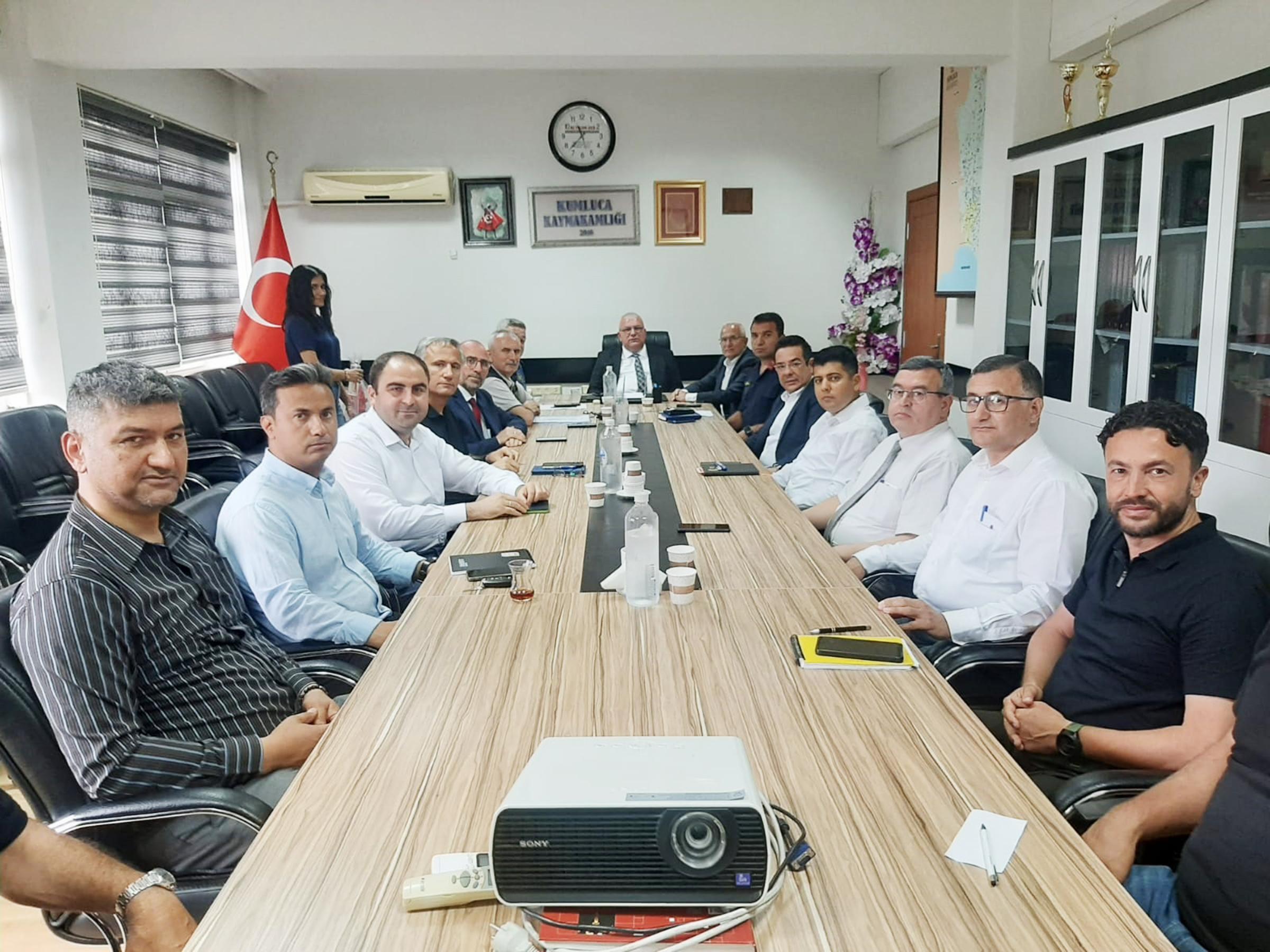 Kaymakam Bahadır Güneş başkanlığında Kumluca Kaymakamlığı'nda gerçekleştirilen toplantıya Kumluca Belediye Başkanı Mesut Avcıoğlu, Antalya Büyükşehir Belediyesi Kumluca Koordinasyon Başkanı Kerem Kaya Turan, Kumluca Orman İşletme Müdürü Cengiz Okudan, İlçe Jandarma Komutanı Binbaşı Erkan Özgür, İlçe Emniyet Müdürü Mehmet Akbulut, İlçe Müftüsü Bedir Aydın, Tarım ve Orman İlçe Müdürü İsa Akşit ve Kumluca Muhtarlar Derneği Başkanı İbrahim Songur katıldı.