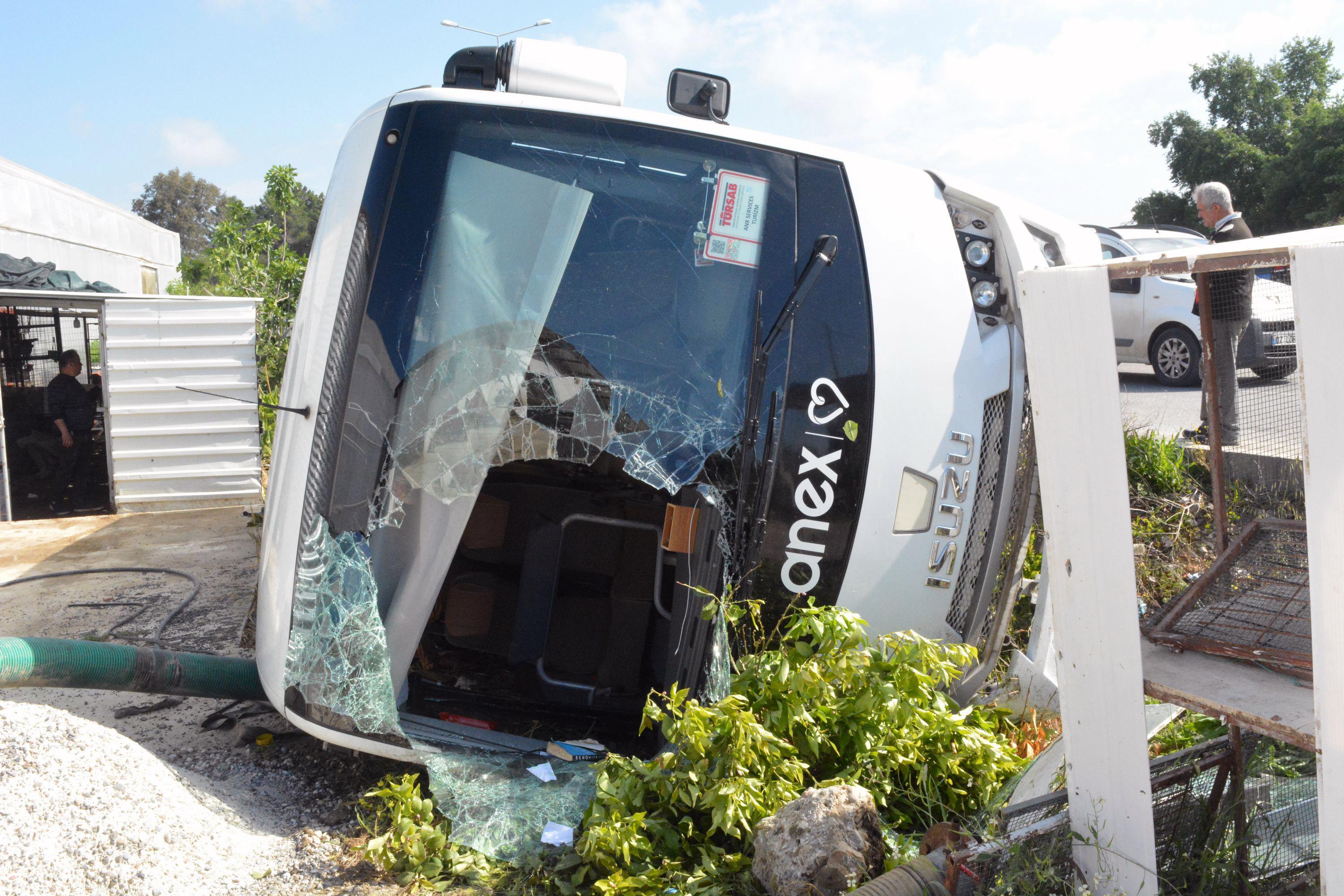 Manavgat'taki otellere turist taşıyan Fatih Karataş yönetimindeki 07 AVN 799 plakalı tur midibüsü, saat 08.00 sıralarında Gündoğdu Mahallesi'nde sürücünün hakimiyeti kaybetmesiyle yoldan çıktı. Minibüs, Yörük Mustafa Bey Bulvarı'nda seralar ile yol arasındaki bahçeye devrildi. İhbar üzerine olay yerine jandarma ve sağlık ekibi sevk edildi. Kazada yaralanan sürücü ile 18 Rus turist, sağlık ekibinin müdahalesinin ardından ilçedeki hastanelere götürüldü. (DHA)