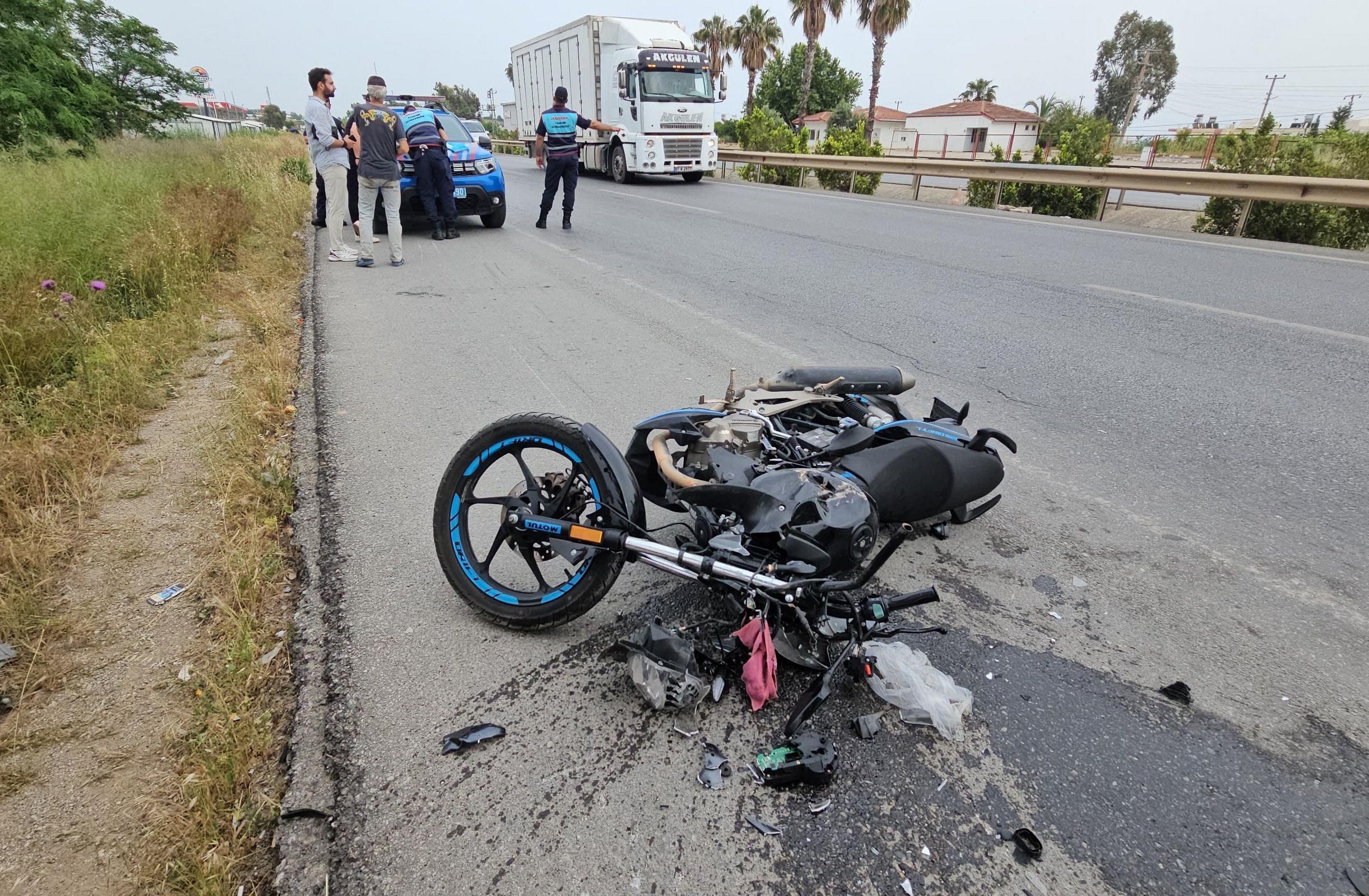 Kaza, dün saat 16.30 sıralarında Ulualan mevkiinde meydana geldi. Alanya yönünden Manavgat istikametine ilerleyen H.A. 07 BOZ 239 plakalı ticari aracıyla, yavaşlayarak emniyet şeridinde durdu. Bu sırada, aynı istikamette seyir halindeki K.Ö. kullandığı 07 BTT 207 plakalı motosikletiyle araca arkadan çarptı. Motosiklet sürücüsü, ihbar üzerine kaza yerine gelen sağlık ekibinin ilk müdahalesinin ardından hastaneye götürüldü. (DHA)