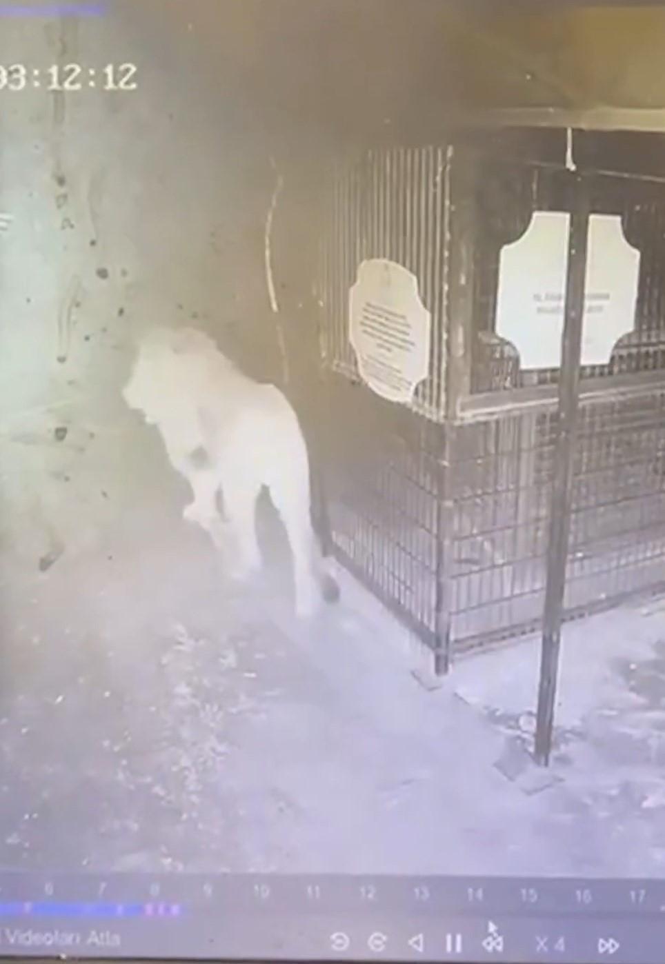 Antalya'nın Manavgat ilçesindeki hayvan parkından kaçtıktan sonra saldırdığı Süleyman Kır'ı yaralayan aslanın kafesten kaçma anı, güvenlik kamerasına yansıdı. Görüntülerde; aslanın kafesten çıktıktan sonra bir süre çevrede dolandığı ardından uzaklaştığı görüldü. (DHA)