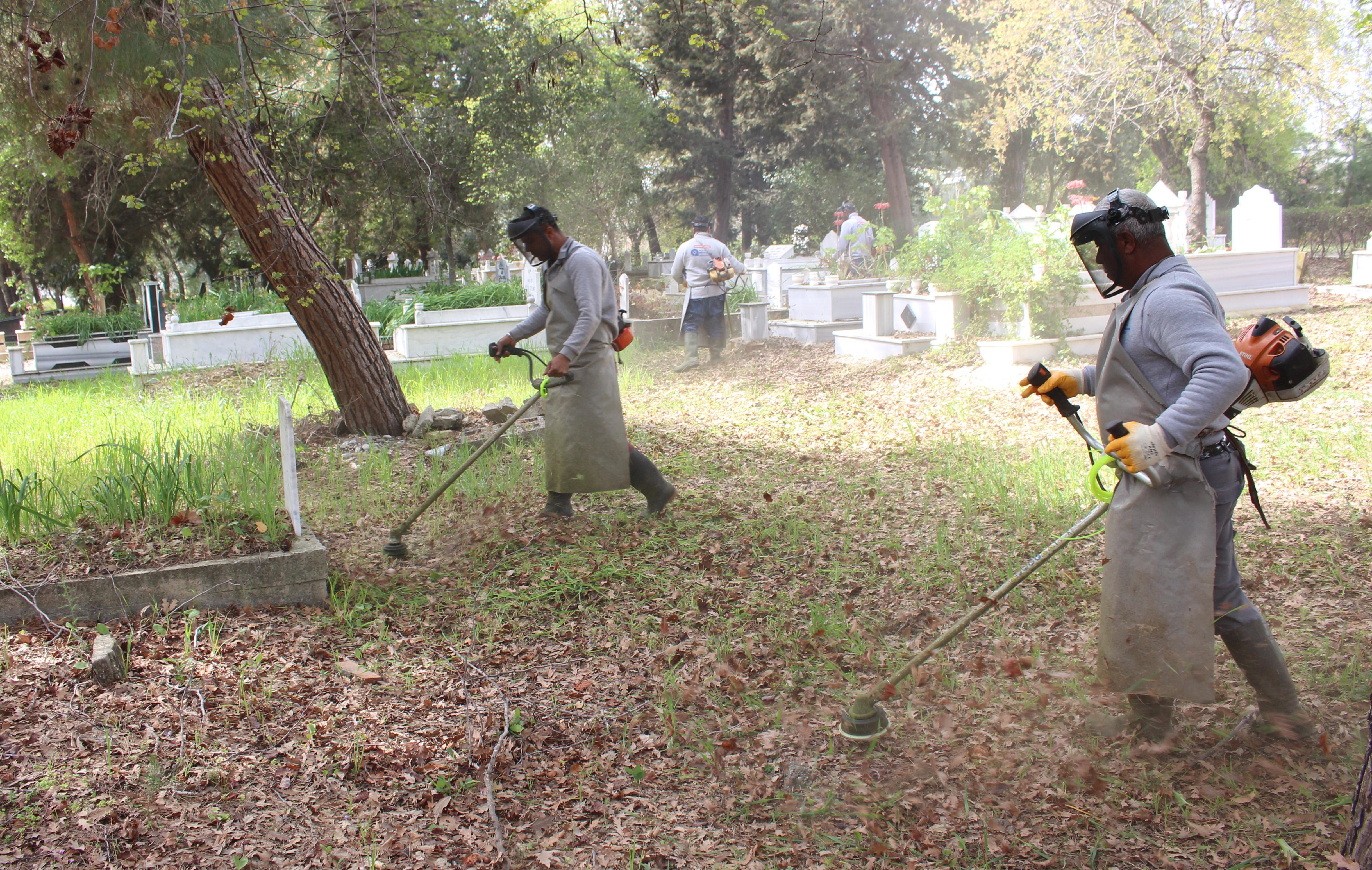 Antalya Büyükşehir Belediyesi Mezarlıklar Şube Müdürlüğü ekipleri, Antalya'nın doğu ve batı ilçelerindeki mezarlık alanlarında temizlik çalışmalarını sürdürüyor. Büyükşehir ekipleri ilçelerdeki mezarlık alanlarında hummalı bir çalışma gerçekleştirirken, mezarlar aralarındaki yollarda bozulan bordür taşlarını yeniliyor. Ekipler, mezar duvarlarında düzenleme yaparak, yıkılan duvarlar onarılıp, boyanıyor. Mezarlık alanlarındaki büyüyen ot ve bitkiler kesilirken, bir yandan da ilaçlama yapılıyor. Vatandaşların rahat bir şekilde kabir ziyareti yapabilmesi amacıyla ekipler, titiz bir çalışma yürütüyor.