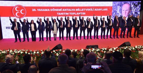 Tolga YILDIRIM/ANTALYA, (DHA) - MİLLİYETÇİ Hareket Partisi (MHP) Antalya İl Başkanlığı tarafından düzenlenen toplantıda, 28'inci yasama dönemi Antalya milletvekili adayları tanıtıldı.