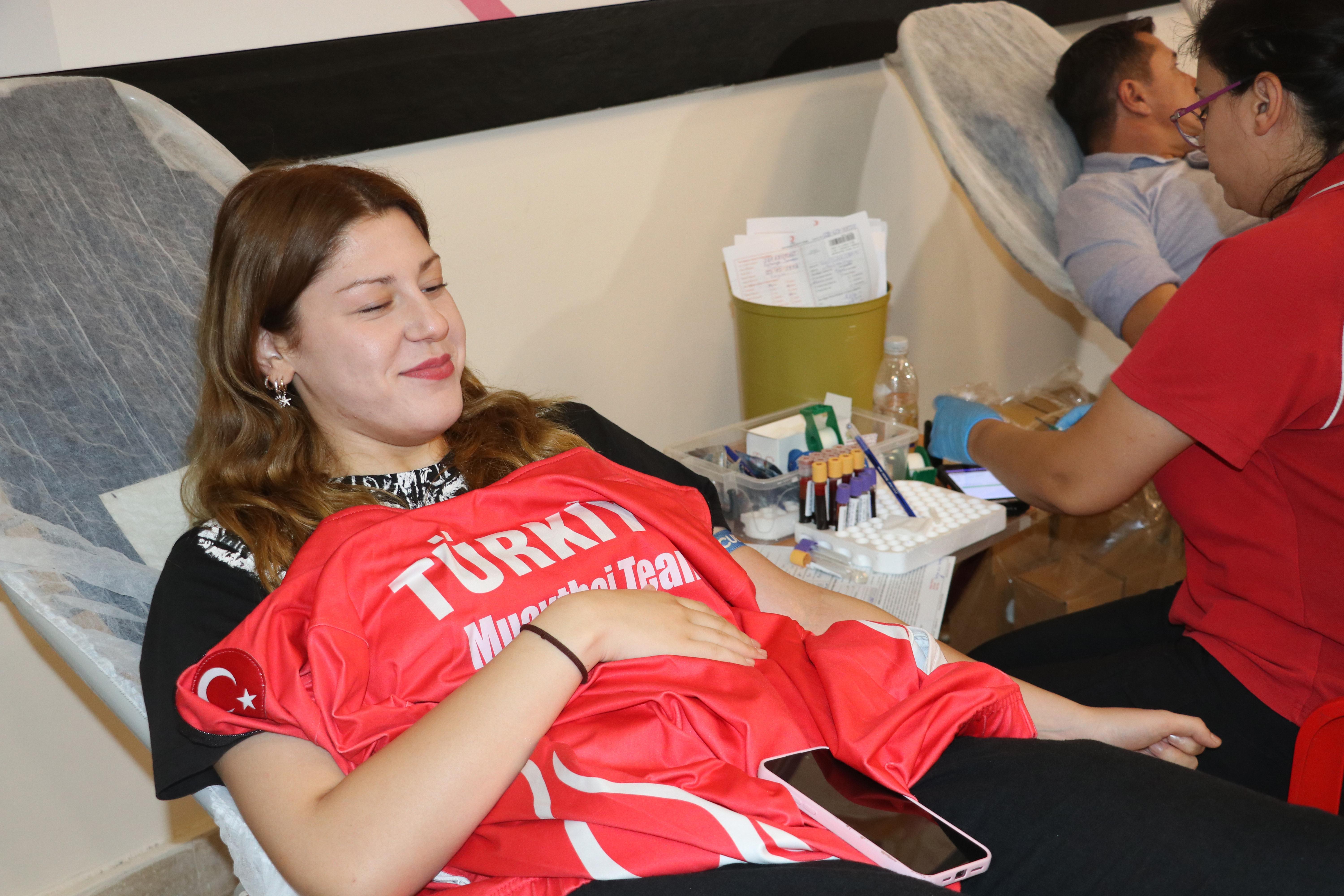 Muay Thai branşında dünya dereceleri bulunan milli sporcu Zeliha Nur Kamaç ise “Bugün burada Kızılay için birlikteyiz. Siz de kan bağışında bulunursanız çok sevinirim" dedi.