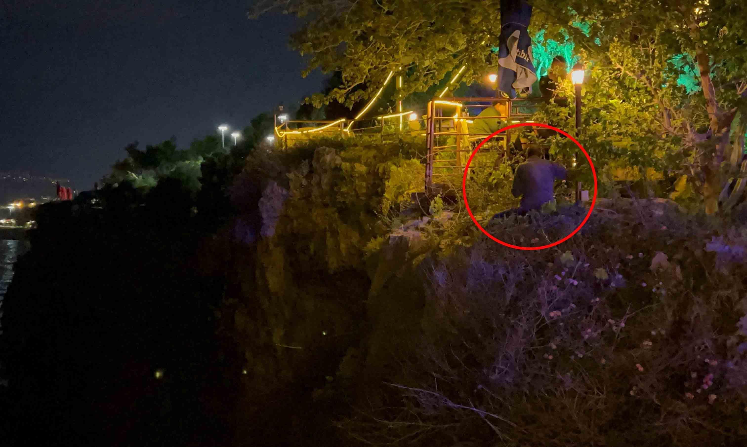 Olay, dün saat 20.00 sıralarında, Muratpaşa ilçesi Bahçelievler Mahallesi Konyaaltı Caddesi'ndeki Atatürk Parkı'nın falezlerinde meydana geldi. Kız arkadaşıyla tartışan Mustafa Y., 30 metrelik falezlerin kenarına gelip oturdu. Durumdan şüphelenen kişinin ihbarıyla adrese ekipler sevk edildi. Polis, Mustafa Y.'yi uzun süre ikna etmeye çalıştı. Bulunduğu yerden ayrılmayacağını söyleyen Mustafa Y., kız arkadaşının gelmesini istedi. Ekipler, bölgeye Mustafa Y.'nin kız arkadaşı, babası ve ablasını çağırdı.