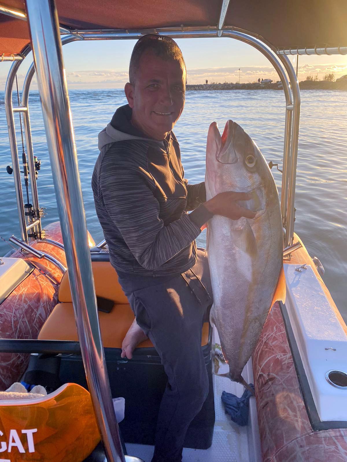 Boğazkent Mahallesi açıklarında tekneyle balık avlamaya çıkan Raşit Durgut ve Mustafa Ünal, oltayla 24 kilogram ağırlığında kuzu balığı yakaladı. Hobi olarak balık avladıklarını anlatan Raşit Durgut, "Boş vaktimizde arkadaşlarla veya tek başıma balık avına çıkıyorum. 2 ay önce 21 kilo ağırlığında kuzu balığı yakalamıştık. Bugün de 24 kilo ağırlığında kuzu balığı yakaladık. Balık oltamıza takıldıktan sonra yaklaşık bir saat boyunca tekneye çıkarmak için uğraştık" diye konuştu. (DHA)
