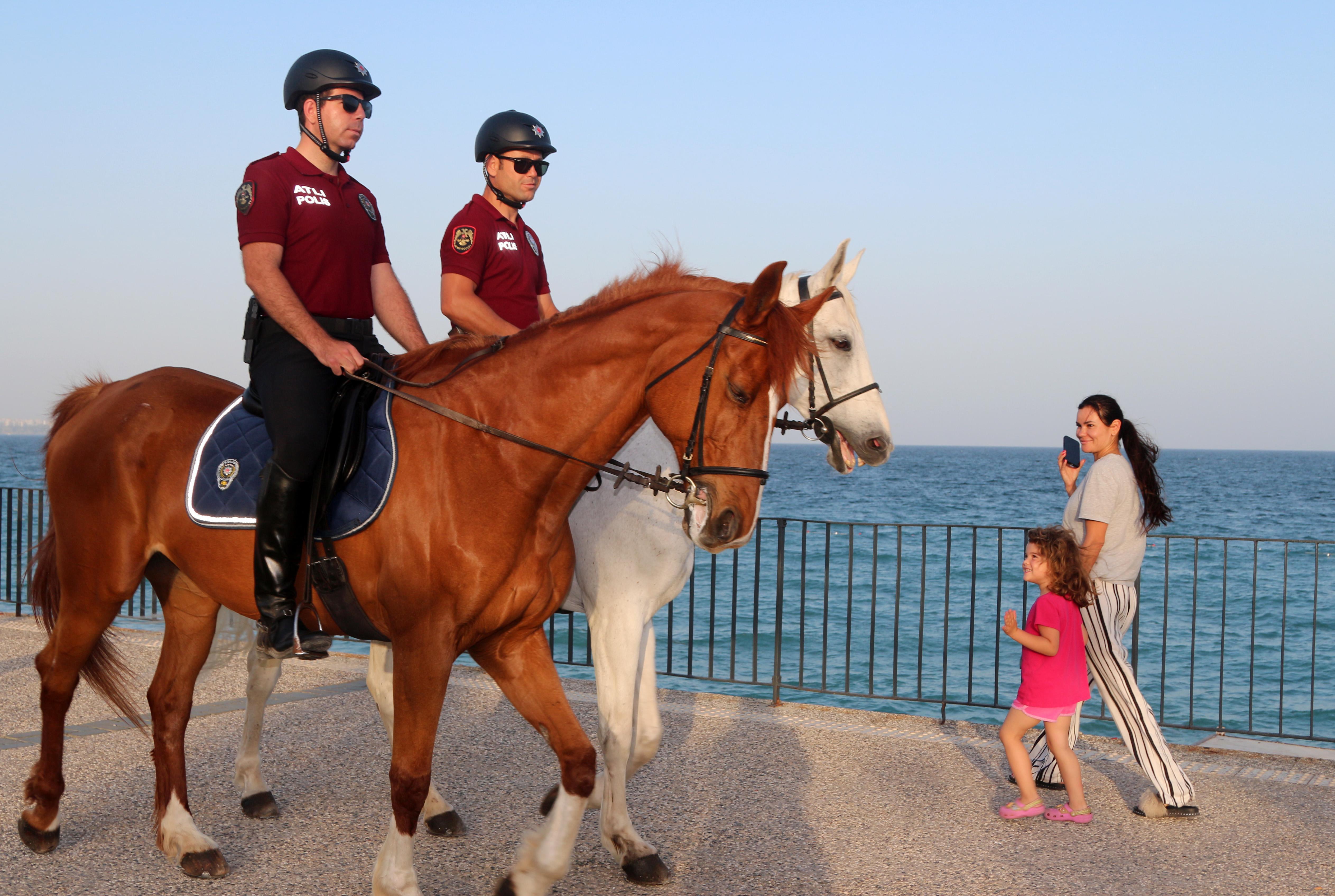 Antalya'da turizm sezonunun başlamasıyla birlikte sahillerde güvenliği sağlamak amacıyla atlı polis timleri devriye görevine başladı. Özellikle Konyaaltı Sahili'nde görev yapıp, asayiş olaylarına müdahale eden atlı polisler, vatandaşların yoğun ilgisiyle karşılaşıyor. Sahilde devriye gezen atlar arasındaki anne- kız 'Babilon' ve 'Filika' isimli atlar, sahilde dikkatleri üzerlerine çekiyor. Atlı Polis Birliği'ndeki 12 at her gün yaklaşık 1 saat eğitimden geçerken, profesyonel binicileri eşliğinde görevlere hazırlanıyor. Kalabalık etkinliklerde, konserlerde ve bayram günlerinde aktif rol alan atlı polisler, atların güçlü sezgisi sayesinde olaylara daha hızlı müdahale edebiliyor. Antalya emniyetinin özel timi, hem yerli hem yabancı turistlere güvenli ve huzurlu bir ortam sunmayı amaçlıyor.
