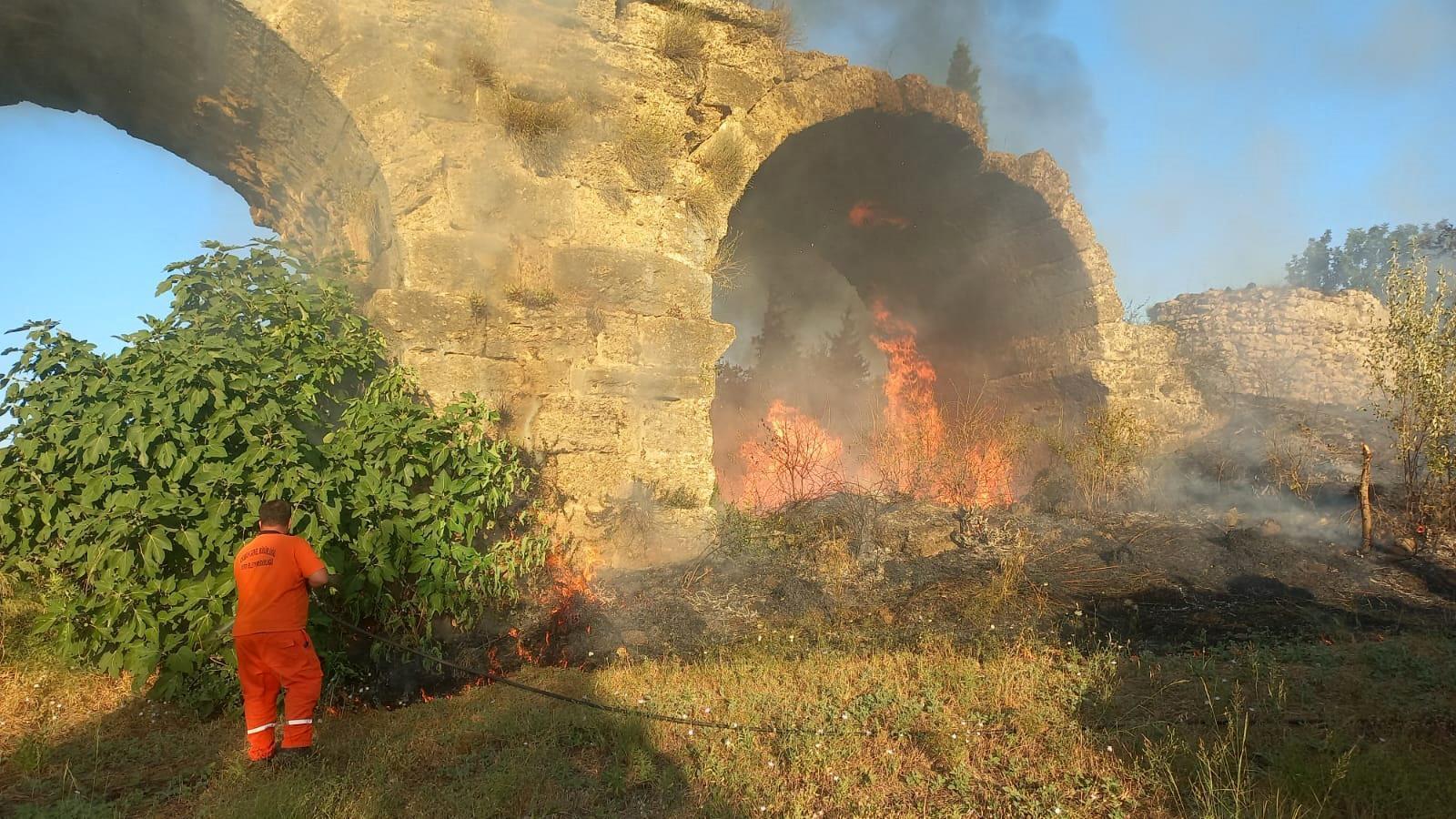 Aspendos'taki su kemerleri yakınındaki yangın söndürüldü