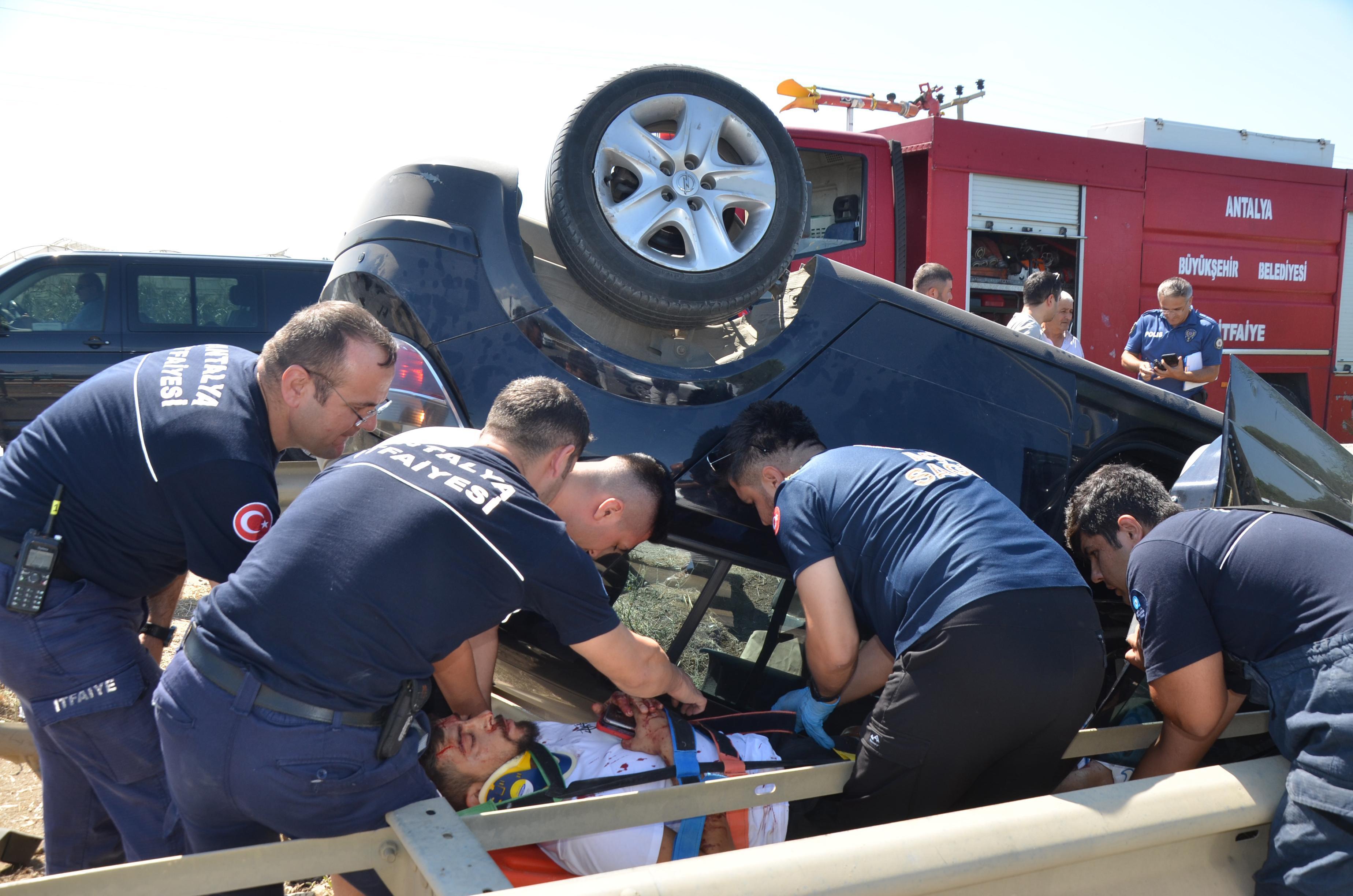 Kaza, saat 12.30 sıralarında Antalya- Alanya D400 kara yolu Serik çıkışında meydana geldi. Abdulbaki Bayındır idaresindeki 06 CSH 73 plakalı otomobil sürücünün direksiyon hakimiyetini kaybetmesi sonucu yoldan çıkarak refüjde bulunan bariyerlere çarptıktan sonra takla attı. Ters dönen otomobildeki sürücü Abdulbaki Bayındır yaralandı.