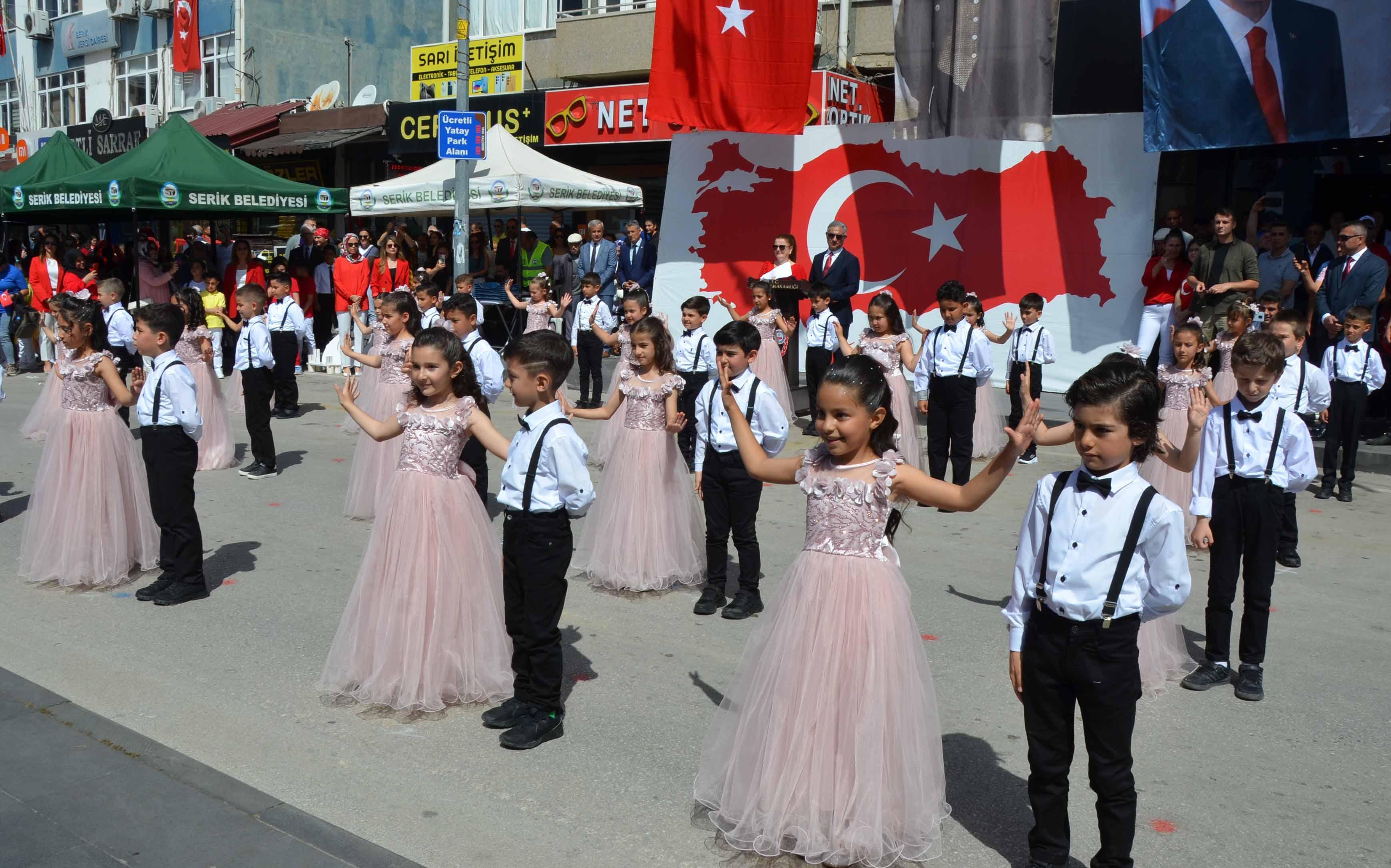 23 Nisan Ulusal Egemenlik ve Çocuk Bayramı kutlamaları kapsamında Cumhuriyet Meydanı'ndaki Atatürk Anıtı'na İlçe Milli Eğitim Müdürü İkram Ekiz tarafından çelenk konuldu. Saygı duruşunda bulunulması ve İstiklal Marşı'nın okunmasının ardından tören sona erdi. Atatürk Caddesi'ndeki kutlama programında İlçe Milli Eğitim Müdürü İkram Ekiz, günün anlam ve önemini belirten konuşma yaptı. Kutlamalarda öğrenciler şiir okudu ve halk oyunu gösterisi sundu.