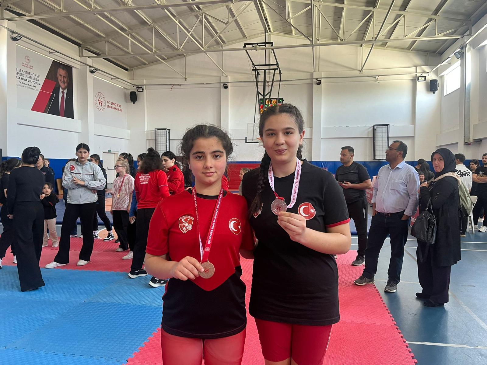 Namık Kemal KILINÇ/SERİK, (DHA)- ANTALYA'nın Serik ilçesinde ortaokul öğrencisi 2 güreşçi Okul Sporları Kadınlar Güreş İl Birinciliği müsabakalarında 2 madalya kazandı.