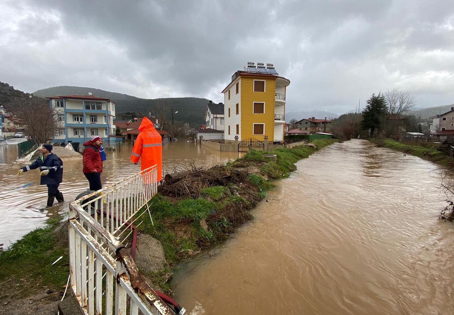 Antalya’nın Akseki ilçesine bağlı Cevizli Mahallesi’nde etkili olan şiddetli yağışlar, su baskınları ve dere taşkınlarına neden oldu. Felaketin ardından ihbar üzerine bölgeye sevk edilen Antalya Büyükşehir Belediyesi itfaiye ekipleri ve ASAT, Akseki Belediyesi ve Orman Bölge Müdürlüğü ekipleriyle birlikte koordineli bir şekilde çalışma gerçekleştirdi. Büyükşehir ekipleri, taşkın sularının tahliyesi, zarar gören alanların temizlenmesi ve güvenlik önlemlerinin alınması için sahada yoğun mesai harcadı. (DH)A