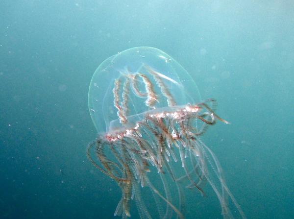 *Cassiopea andromeda (Ters-düz denizanası): Nematosist adında vücutta acıya, deride kızarıklığa, kaşıntıya aynı zamanda kusmaya ve iskelet ağrılarına neden olabilecek toksin üreten nematosistlere sahiptir.