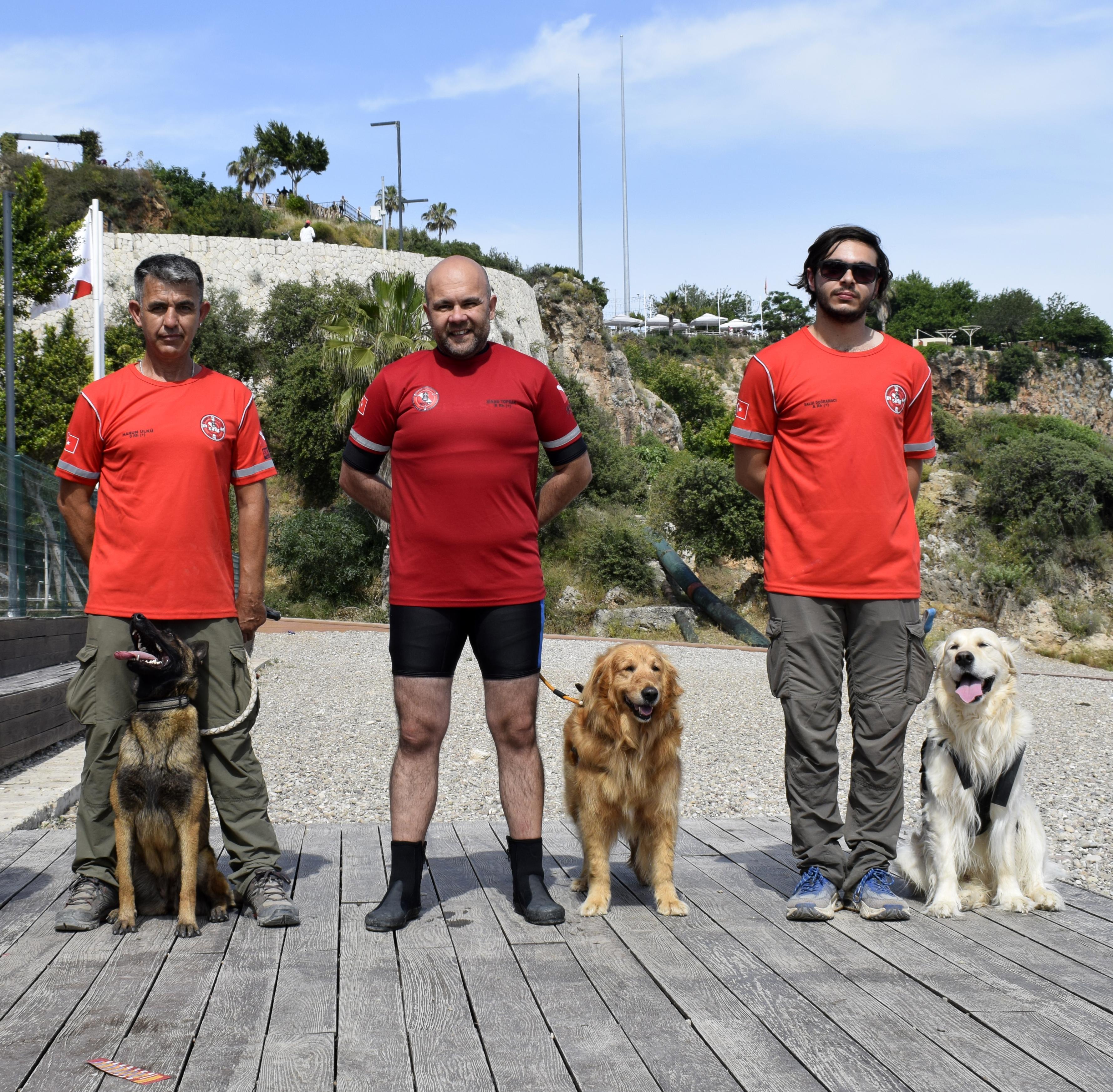 Aysu DURSUN/ANTALYA, (DHA)- ANTALYA'da Suda Arama Kurtarma Derneği (SKUT) bünyesinde görev yapan Zeyna, Tina ve Bulut isimli arama kurtarma köpekleri, suda, doğada ve kentsel aramalarda görev almak üzere eğitiliyor.