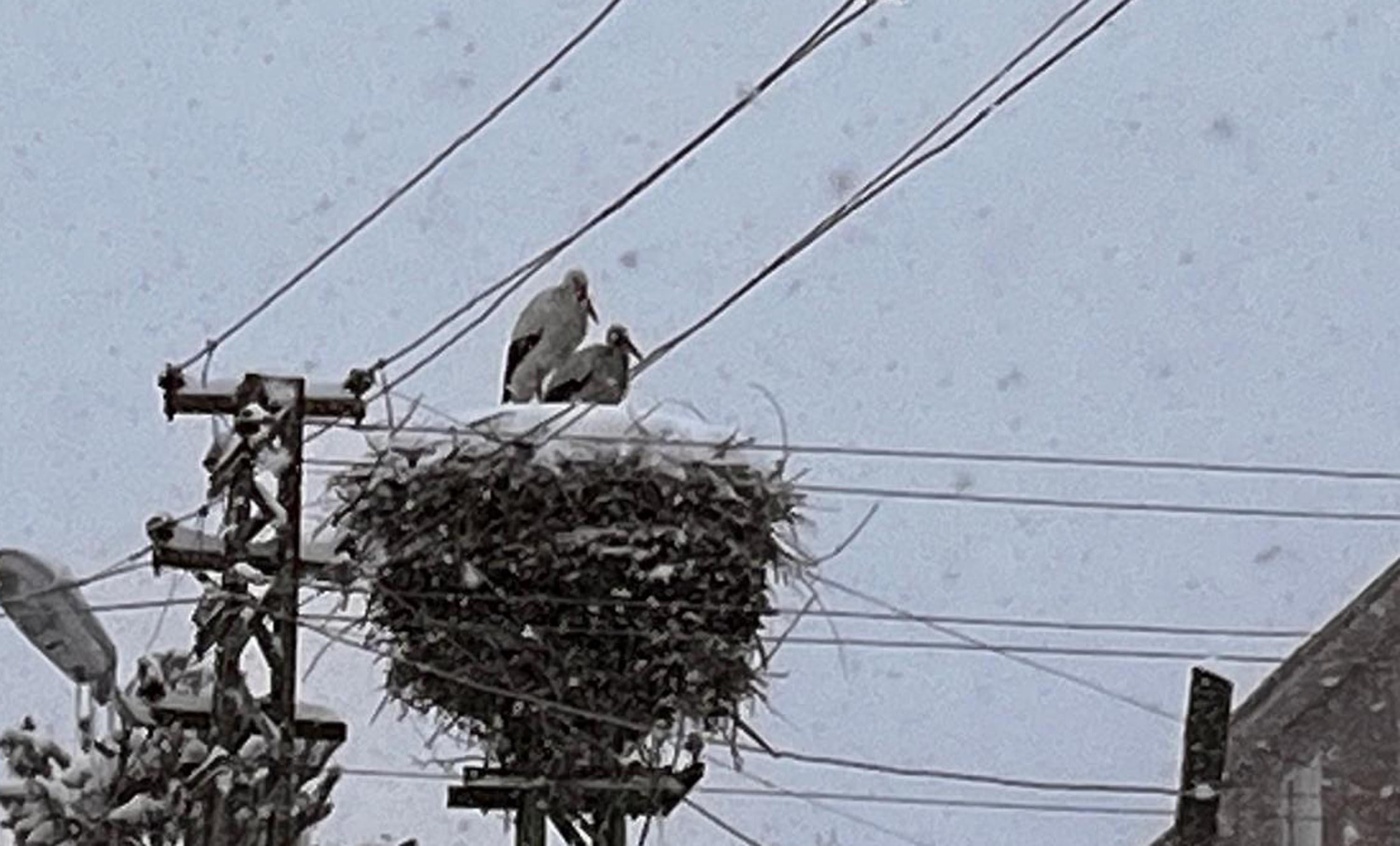 Deniz BAŞLI/ARDAHAN, (DHA)-ARDAHAN'a erken gelen leylekler, kara yakalandı. Kent merkezinde yaptıkları yuvalarına yerleşen leylekler, kar altında görüntülendi.