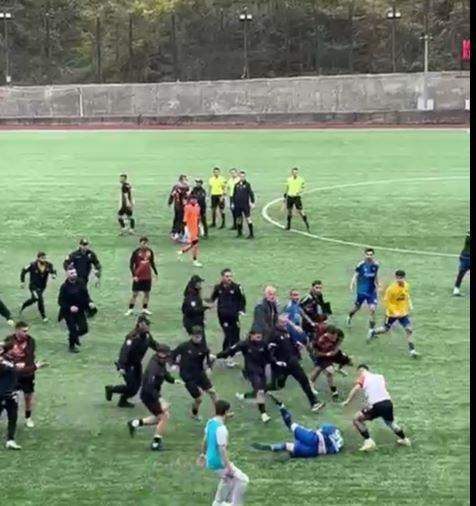 Bölgesel Amatör Ligi karşılaşmasında Murgul Belediyespor, sahasında Rize Atletik Spor Kulübü’nü konuk etti. Murgul İlçe Stadı’ndaki maçın 36’ıncı dakikasında Rize Atletik oyuncusu Enes Türüt’ün attığı golle konuk ekip 1-0 öne geçti. Golden sonra oyun devam ederken ilk yarının son bölümünde 2 takım oyuncuları arasında gerginlik yaşandı. Hakemin ilk yarıyı bitiren düdüğü çalmasıyla iki takım oyuncuları arasında çıkan sözlü tartışma kısa sürede büyüyerek kavgaya dönüştü. Sahada oyuncular birbirine tekme ve yumruklarla saldırdı. Kulüp yöneticileri, özel güvenlik ve polis ekipleri araya girerek olayları yatıştırmaya çalıştı. Stadyum hoparlörlerinden “Sevgili taraftar, lütfen sahaya girmiyoruz, sahaya yabancı madde atmıyoruz” şeklinde anonslar yapıldı. Saha içine yayılan olaylar, polis ekiplerinin müdahalesiyle sonlandırıldı. Sahada yaşanan kavga ve arbede anları cep telefonu kameralarına da yansırken, karşılaşma ise maçın hakemi tarafından ertelendi.