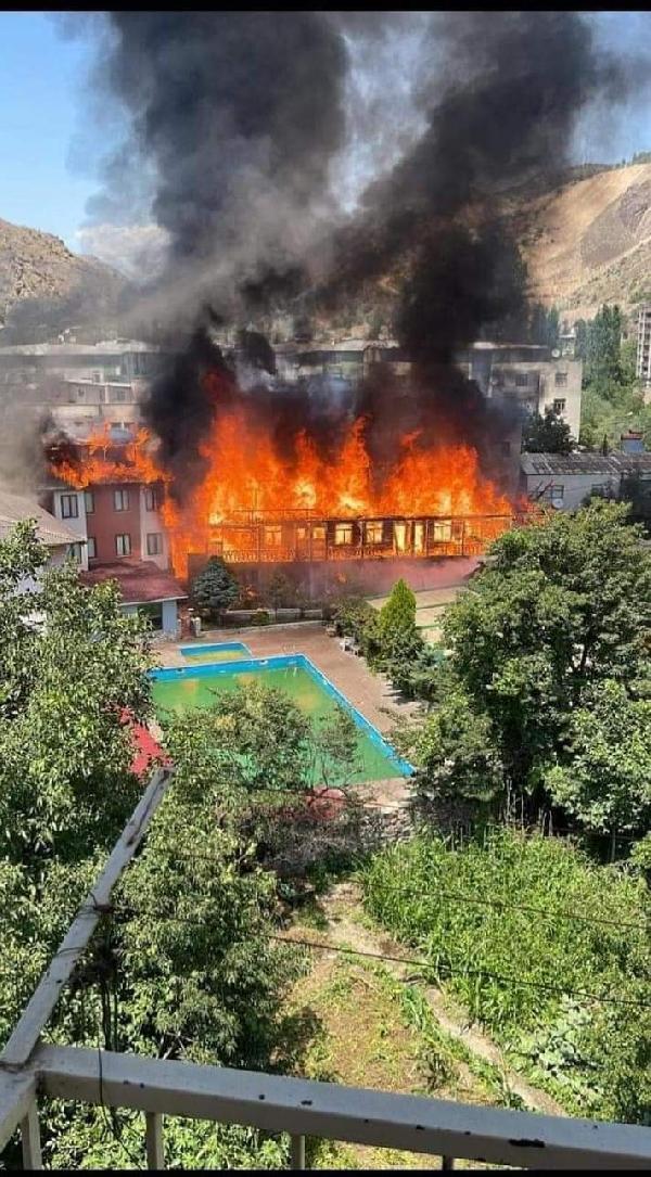 Yusufeli ilçesi Kananet Mahallesi'ndeki 3 katlı otelin çatı kısmında, öğle saatlerinde, belirlenemeyen nedenle yangın çıktı. Alevler, rüzgarın etkisiyle tüm binayı sardı. Müşterisi olmayan otelin personeli de dışarı çıktı. İhbar üzerine bölgeye polis, itfaiye, sağlık, jandarma, Orman İşletme Müdürlüğü ekipleri ile Yusufeli'nin yeni yerleşim yeri inşaatındaki arazözler sevk edildi. Ekiplerin müdahalesiyle 3 bloktan oluşan oteldeki yangın, 2,5 saatte söndürüldü. Otelin büyük oranda kullanılamaz hale geldiği yangının çıkış nedeni araştırılıyor. (DHA)