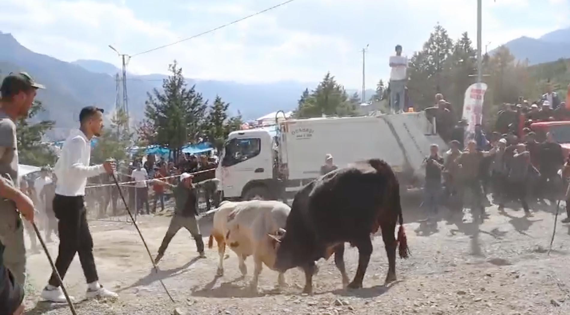 Artvin'in Yusufeli ilçesinde düzenlenen boğa güreşlerinde arena dışına taşan güreşi, rakibi 5 yaşındaki Ateş’i yenen 10 yaşındaki Kral kazandı. Onur Erdem, boğası Kral'ın, kilosunda son 2 yılın şampiyonu olduğunu belirterek, "O doğuştan şampiyon. Rakibi de çok güçlüydü. Sahanın kapısını kırıp dışarı çıktılar. Güreşlerini orada da sürdüren boğalar zevkli bir güreşe sahne oldu. Sonunda kazanan olduğumuz için mutluyum. Son 2 yılda olduğu gibi bu yıl da kendisinden şampiyonluk bekliyorum" dedi. (DHA)