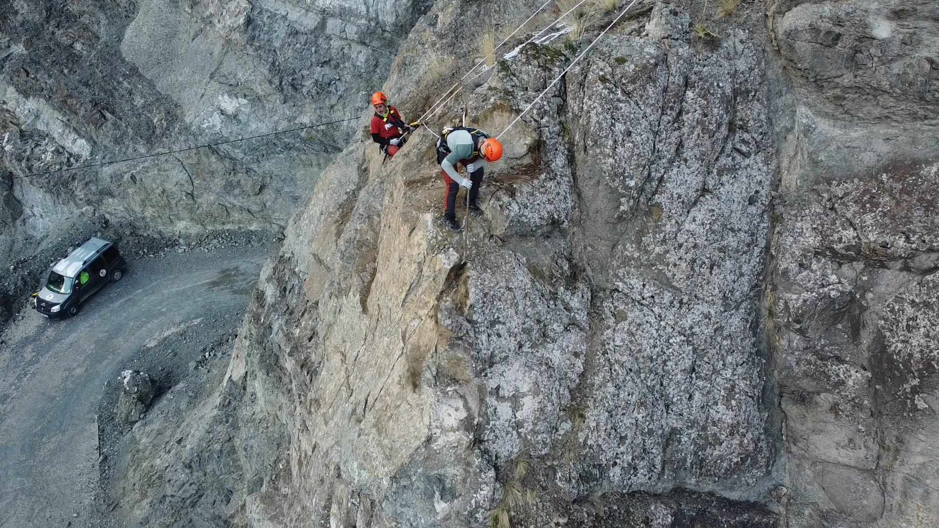 Yusufeli ilçesi Livane Mahallesinde ulaşım sağlanan kara yolu kenarındaki sarp yamaçlarda kaya düşmesi ve heyelan riskine karşı önlemler sıkılaştırılıyor. Özel ekipmanlı endüstriyel dağcılar tarafından tırmanılan yamaçlardaki kayalar temizlenerek ulaşım güvenliği sağlanıyor. Endüstriyel dağcılar, tırmandıkları yamaçlarda, riskli ve askıda kalan kayaları kontrollü olarak düşürüyor. Dağcıların çalışmaları dron kamerasına yansırken, Yusufeli Belediye tarafından başlatılan çalışmaların 1 hafta süreceği belirtildi. Yusufeli Belediye Başkanı Barış Demirci, "İlçemizin tüm mahallelerinde ulaşım güvenliğini sağlamak için gerekli çalışmaları kararlılıkla sürdürüyoruz. Serindere Yerleşkesi’nde başlattığımız bu çalışma, muhtemel kaya düşmelerinin önüne geçmek ve vatandaşlarımızın can güvenliğini sağlamak adına büyük önem taşıyor" dedi. (DHA)