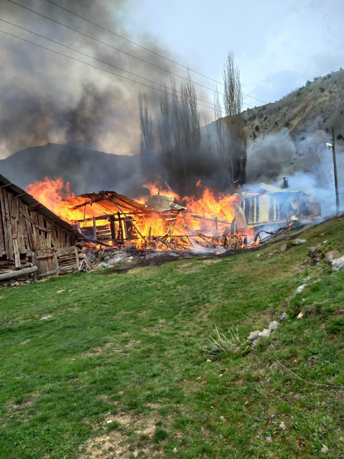 Yusufeli’de yangın; 3 ev, samanlık ve ahır küle döndü