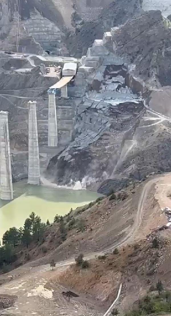 Geçen yıl 22 Kasım'da su tutmaya başlayan, Türkiye'nin en yüksek barajı Yusufeli Barajı suları altında kalmaya başlayan Yusufeli'nin eski yerleşim yeri Yansıtıcılar- Sakut mevkisinde yeni ilçeye ulaşımın sağlaması için inşa edilen viyadük ayaklarının yanındaki yamaçta dün akşam saatlerinde heyelan oldu. Heyelan, cep telefonu kamerasıyla kaydedildi.