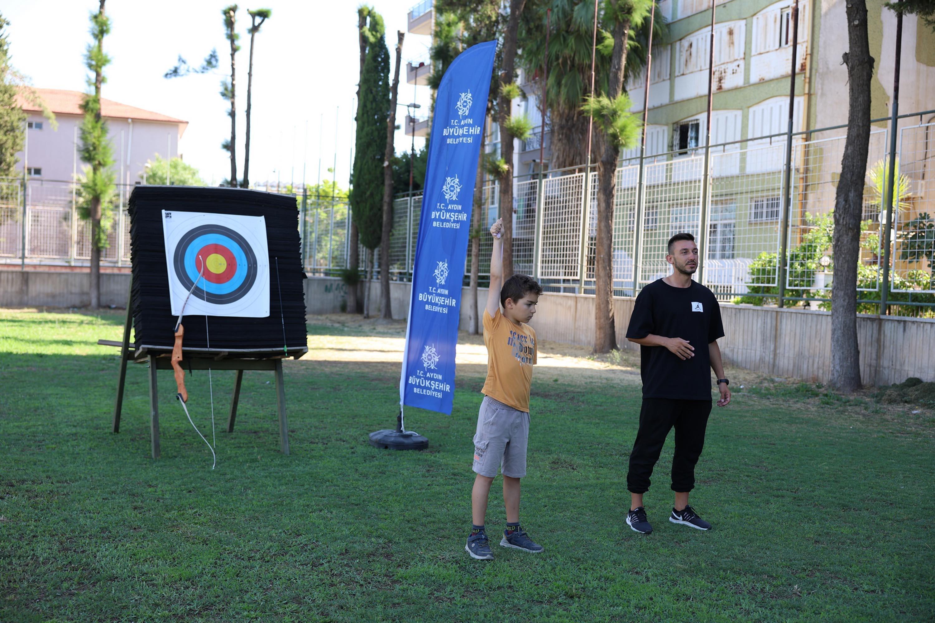 AYDIN, (DHA)-AYDIN'da Büyükşehir Belediyesi'nin yaz kursları kapsamında çocuklar okçuluk sporuyla tanışıyor. Çocukları spora yönlendirmeye devam edeceklerini belirten Aydın Büyükşehir Belediye Başkanı Özlem Çerçioğlu, "Geleceğin başarılı sporcularını Aydın'dan çıkarmak bizim en büyük hedefimiz" dedi.